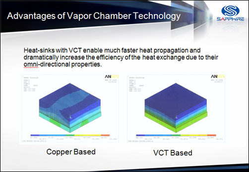 من النقطة التي بدأنا بها هذه المقالة نعود من جديد، وهي العلاقة بين شركة Sapphire وتقنية Vapor-X ، حيث تعود هذه العلاقة إلى فترة ليست بالبعيدة ، فشركة Sapphire هي أول مصنع للبطاقات الرسومية يستخدم تقنية شركة Microloop المسماه Vapor Chamber كتقنية لتبريد بطاقاتها , وتطمح الشركة في تقديم منتج مميز ، مثالي ، موفر للطاقة ، قليل الضوضاء وأحسن في التصميم للمستخدم النهائي لبطاقاتها . فبطاقة Sapphire 3870 التي أطلقت عام 2007 كانت أول بطاقة في العالم تستخدم هذه التقنية , واستخدمت فيها شرائح نحاسية نحيفة جدا تبلغ سماكتها 3ملم للتبريد كل هذا في تصميم أحادي التبريد للبطاقة , استطاع هذا المشتت أن يشتت أكثر من 150 واط من الحرارة ، أثناء العمل تحت ضغط التطبيقات ثلاثية الأبعاد . استطاع Sapphire 3870 أحادى التبريد آنذاك أن يحقق درجات حرارة اقل أثناء العمل من تصميم ATI الافتراضي “BBA” مزدوج التبريد.
