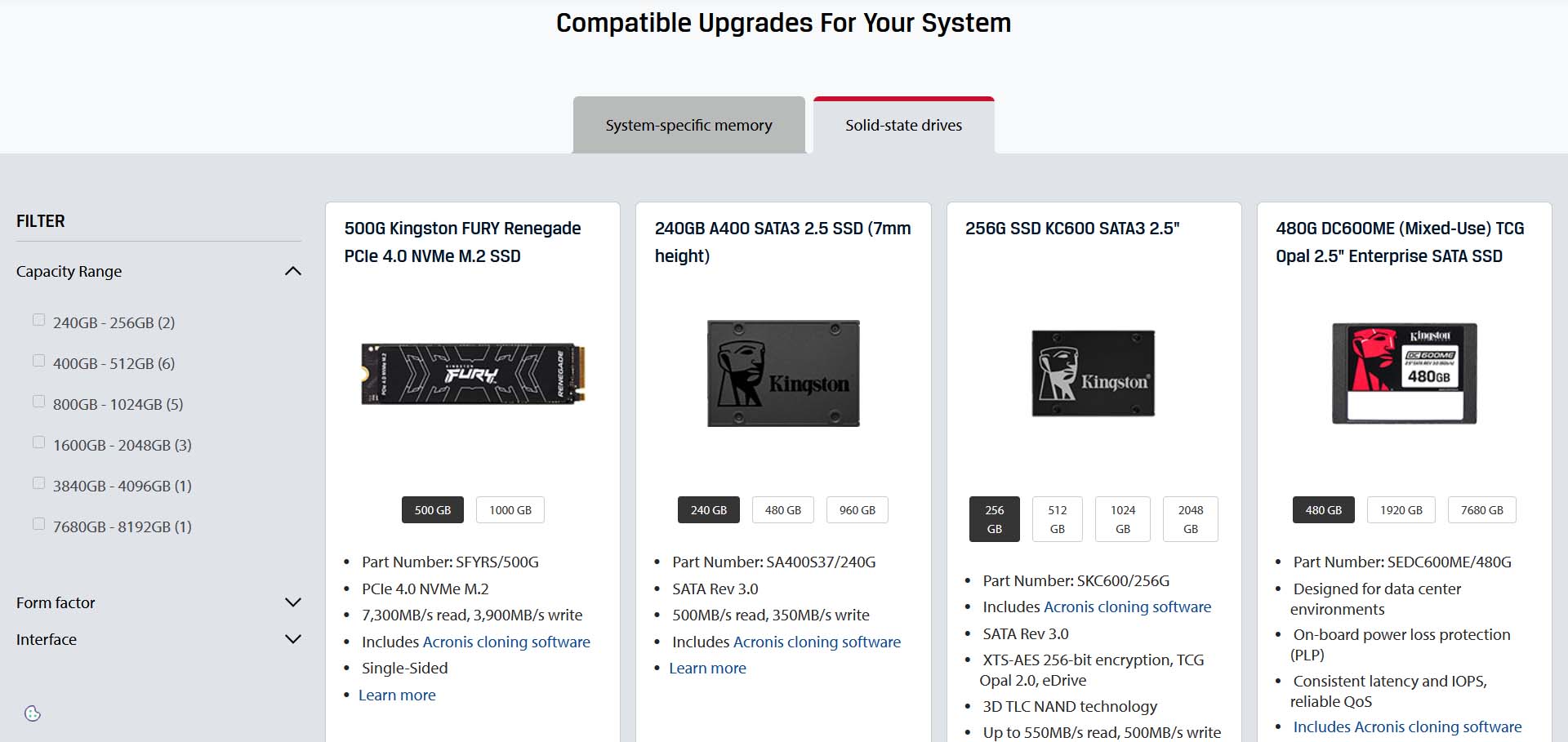 تتضمن المزايا الرئيسية لأداة Kingston Product Finder قاعدة بياناتها الشاملة للأجهزة، والتي تغطي أجهزة الحاسب المحمولة وأجهزة الحاسب المكتبية والخوادم والمزيد، إلى جانب واجهتها سهلة الاستخدام التي توجه المستخدمين خطوة بخطوة. لا توفر الأداة الوقت فحسب، بل توفر أيضًا راحة البال من خلال ضمان عمل المكونات المحددة بسلاسة مع نظامك.