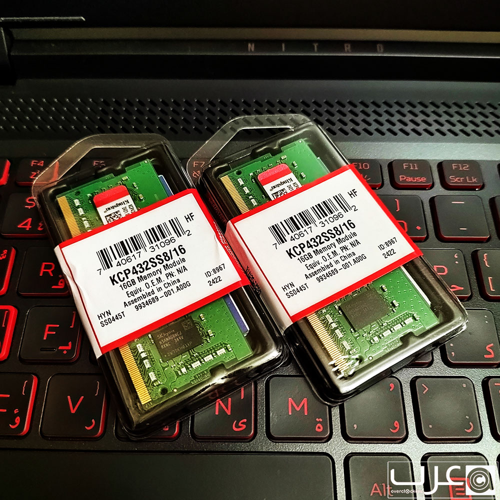 بدلاً من قطعة ذاكرة واحدة سعة 8 جيجابايت، تم تحديث ذاكرة الجهاز بتركيب قطعتين من ذاكرة Kingston DDR4 3200MT بسعة 16 جيجابايت لكل قطعة، مما زاد من إجمالي سعة الذاكرة إلى 32 جيجابايت واستفاد من تقنية القنوات المزدوجة التي تعزز أداء الجهاز وتساهم في تشغيل البرامج والتطبيقات بشكل أسرع وأكثر سلاسة.