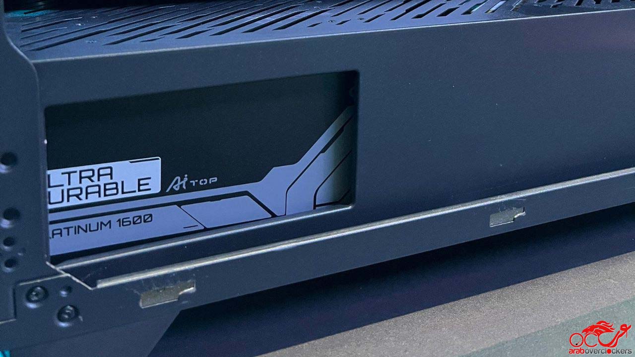 بالنسبة لبطاقات RTX 4070 Ti Super Ai TOP، فإن علامة “Ai” تشير بشكل رئيسي إلى إعدادات التبريد المحسنة، وفقًا لجيجابايت. هذه البطاقات مزودة بنظام مروحة توربو مصنوع من مواد فائقة التحمل وهيكل محمل كروي مزدوج، مما يسمح بتشغيل الأحمال الكبيرة بسرعات عالية لفترة أطول. ميزة التصميم ذو الفتحتين تتيح تركيب أربع بطاقات على أحدث لوحات Gigabyte. تستهلك كل بطاقة حوالي 300 واط، لذا فإن تركيب أربع بطاقات معًا سيستهلك حوالي 1200 واط بكامل طاقتها. ومع إضافة استهلاك الطاقة للمعالج ومحركات الأقراص، يتضح سبب استخدام جيجابايت لمصدر طاقة Ai TOP بقدرة 1600 وات من فئة البلاتين.