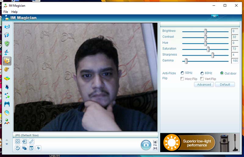 وحتى اقوم بنقل تجربة فعلية للمشتري قمت بتجربة الفيديو في بيئة واقعية، تتمثل تجربتها في المنزل في اضائة عادية جدا، وقمت في ذلك باستخدام تطبيق الكاميرا الخاص بنظام Windows وتطبيق Im Magician الخاص بشركة A4TECH، وكما سترى في لقطات الشاشة فقد ادت الكاميرا جيدا في هذه الاضائة التي تعتبر ضعيفة، وتفوق تطبيق كاميرا النظام على تطبيق Im Magician في تقليل تشوه الصورة نتيجة الاضائة، وفي اثناء الاختبار مع برامج الاتصال مثل Skype و Zoom كانت جودة الفيديو جيدة جدا بصورة فاقت توقعاتي، وخاصية التركيز التلقائي اضفت الى الكاميرا ميزة تجعلها اختيار مثالي خصوصا لللاعبين الذي في الغالب تكون حركتهم كثيرة.