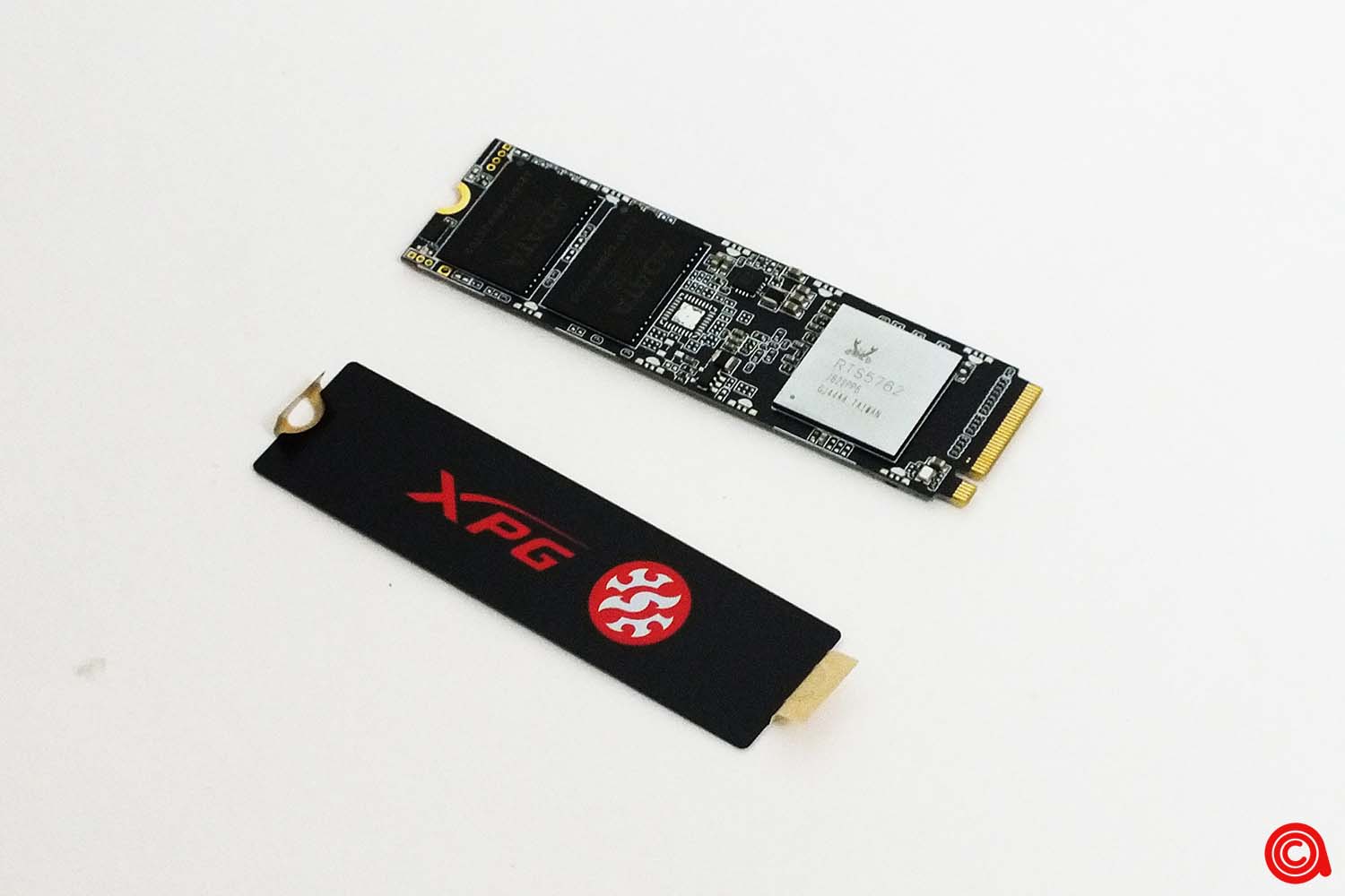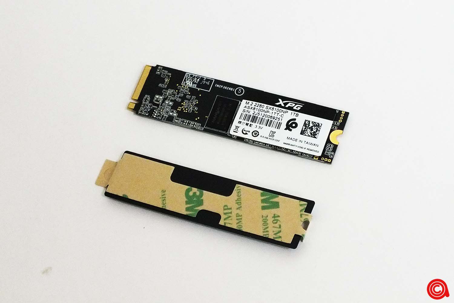 وتقع وحدة التحكم، حيث يتم توليد معظم الحرارة ، على “مقدمة” محرك الأقراص M.2 ، تحت الجزء الفضي من المحرك. وضمنت XPG ملصق معدني رفيع لتشتيت الحرارة، مع مركب حراري مطبق مسبقًا. ومع ذلك، وبسبب القطع التدريجي على الملصق، والتنسيب الاستراتيجي للمركب الحراري ، لا يمكن توجيه الملصق إلا في اتجاه واحد. هذا الاتجاه الواحد يحدث مقلوبًا في معظم الأنظمة. كان من الممكن أن يحتوي قرص XPG على ملصق آخر لعلاج هذا الموقف.