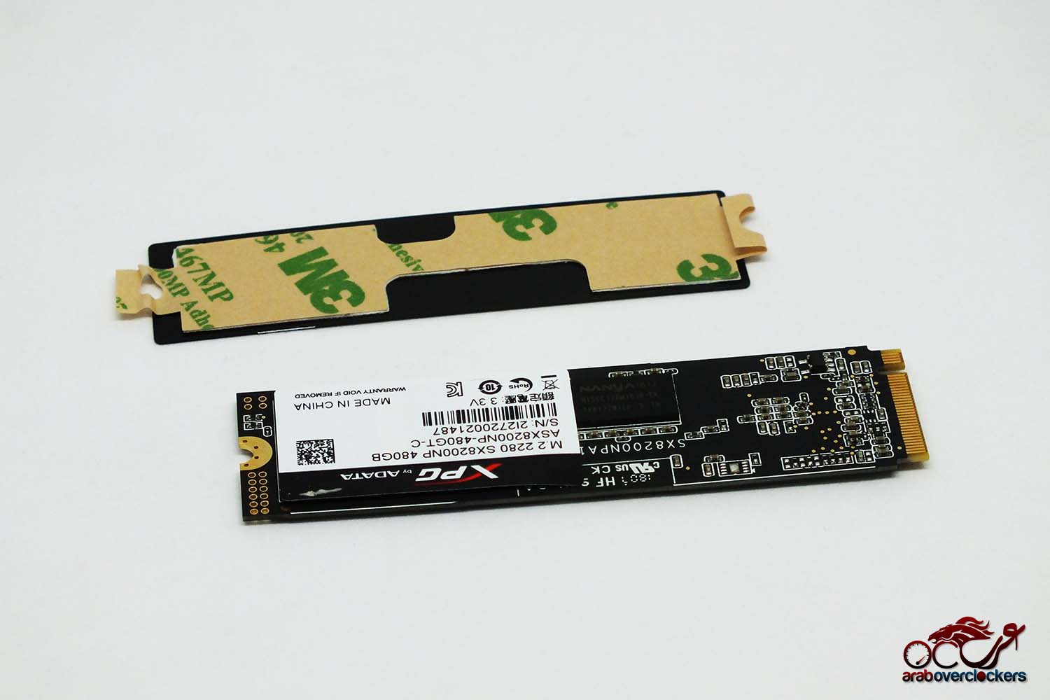 وتقع وحدة التحكم، حيث يتم توليد معظم الحرارة ، على “مقدمة” محرك الأقراص M.2 ، تحت الجزء الفضي من المحرك. وضمنت XPG ملصق معدني رفيع لتشتيت الحرارة، مع مركب حراري مطبق مسبقًا. ومع ذلك، وبسبب القطع التدريجي على الملصق، والتنسيب الاستراتيجي للمركب الحراري ، لا يمكن توجيه الملصق إلا في اتجاه واحد. هذا الاتجاه الواحد يحدث مقلوبًا في معظم الأنظمة. كان من الممكن أن يحتوي قرص XPG على ملصق آخر لعلاج هذا الموقف.