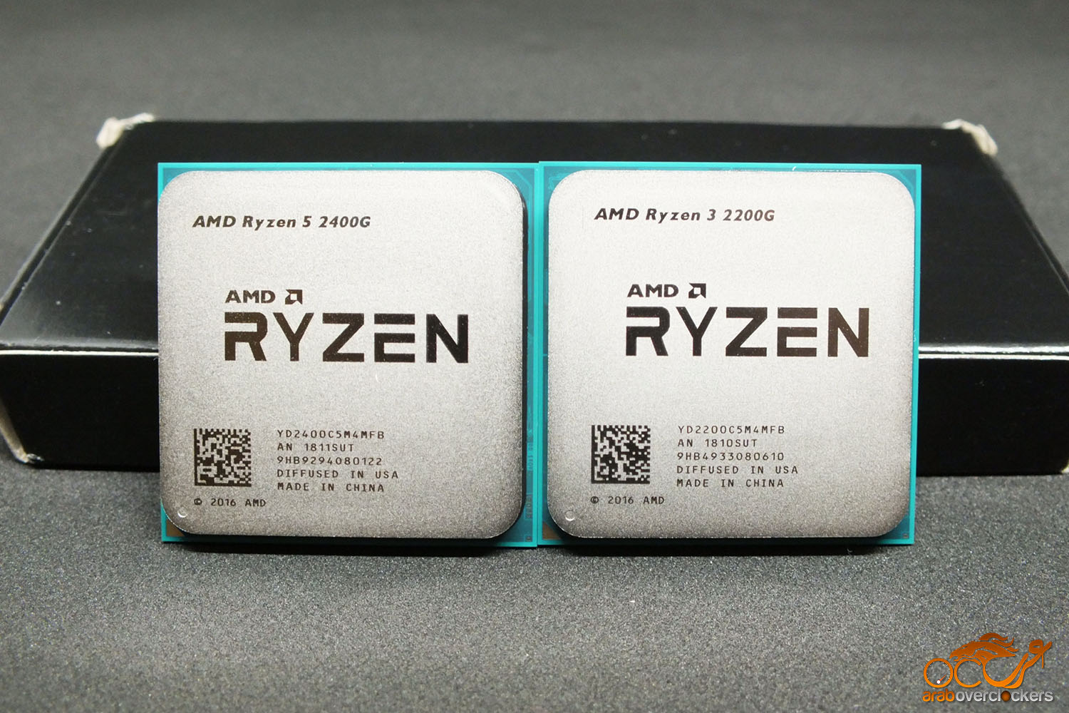تتشابه او تطابق تغليف (صناديق) المعالجات الجديدة الى حد بعيد مع صناديق معالجات Ryzen الاقدم التي تأتي مع مشتتات، والفارق هنا هو وجود شعار واسم وحدات Vega الرسومية باعلى الصندوق لتعريف المشتري بما سيحصل عليه عند الشراء.