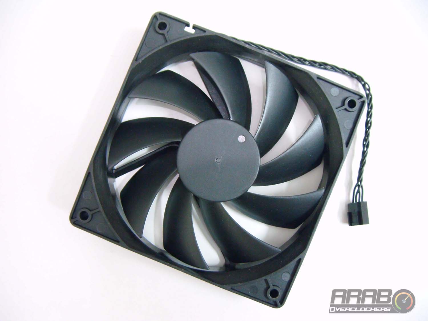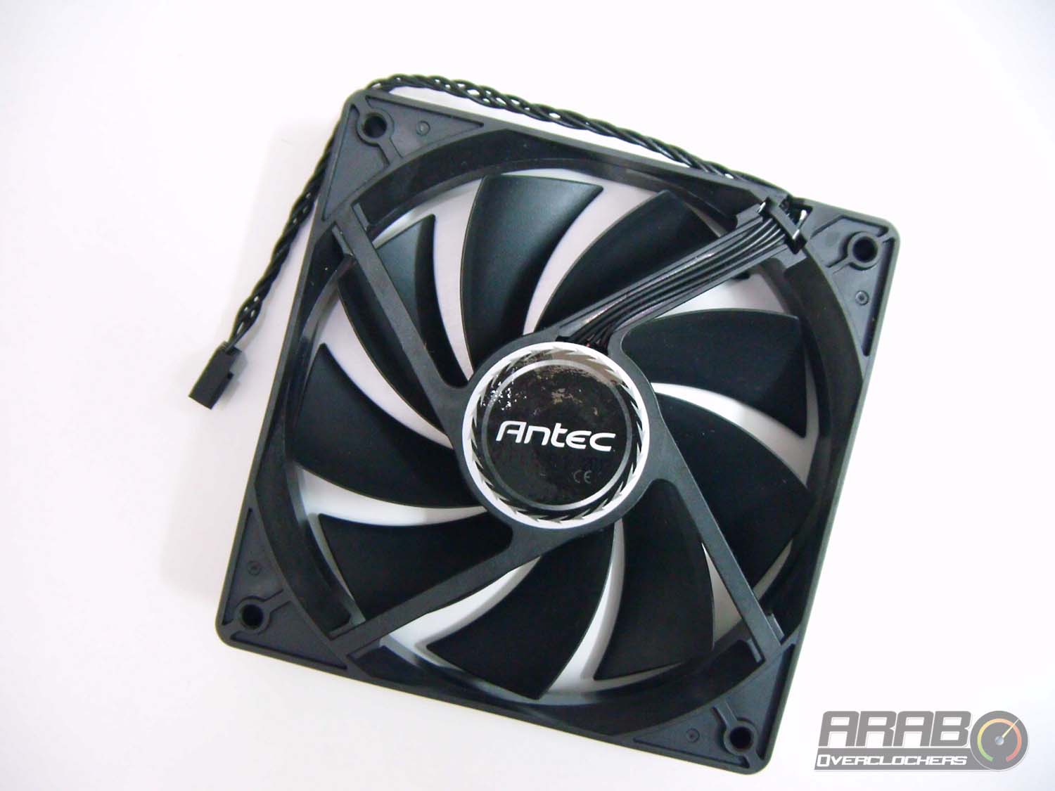 يأتي مع المشتت مروحتان بقياس 120مم يدعمات تقنية PWM للتحكم في عدد لفاتهما ، وعدد اللفات يبدأ من 700 الى 2400 لفة في الدقيقة . المرواح كما نرى باللون الاسود والاسلاك الخاصة بالتوصيل ايضا تأتي في اللون الاسود . كل مروحة منهم عليها شعار واسم Antec على الجهة التي تطرد الهواء . وفي الحقيقة لم ارى مرواح مرفقة مع اي مشتت هوائي او مائي مثل المرواح التي ترفقها Antec من حيث السرعة وتدفق الهواء .
