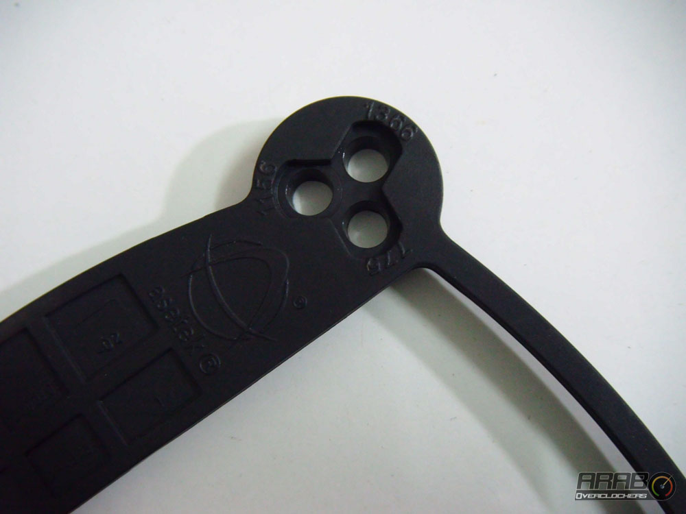 الصورة بالاعلى توضح قاعدة تثبيت منصات Intel ونرى شعار Asetec بالاضافة الى ثلاث ثقوب (على كل الاركان) كل ثقب محفور عليه اسم المنصة وهي LGA1366,1156,775 ، وكمثال اذا كنا نريد تركيب المشتت على منصة 1155 فأننا نقوم بادخال قاعدة المسامير في الفتحات (الثقوب) المحفور عليها 1156 (هي نفسها مخصصة لمعالجت 1155) وهكذا لكل منصة .