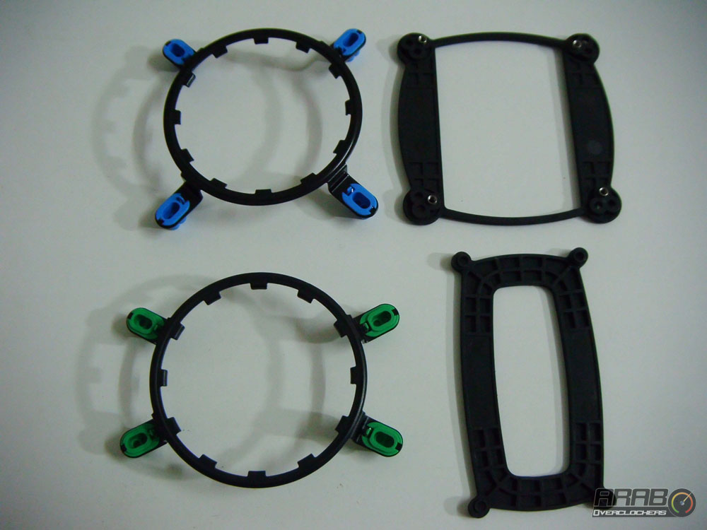 هذه هي مجموعات تثبيت المشتت باللوحة الام ، المجموعة العلوية للتثبيت على منصات Intel ، والمجموعة السفلية للتثبيت على منصات AMD .