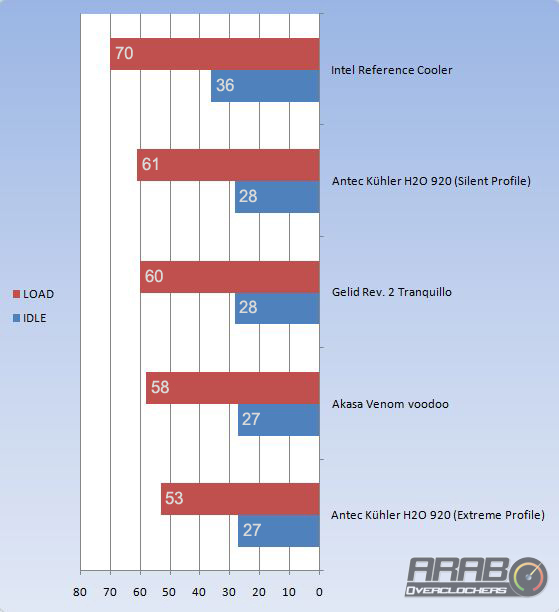 تم الاختبار مع عدد من المشتات الهوائية الحديثة للمقارنة بينها وبين مشتت Antec Kühler H2O 920 ويتمكن القارئ من الاختيار الصحيح والسليم عن الشراء .