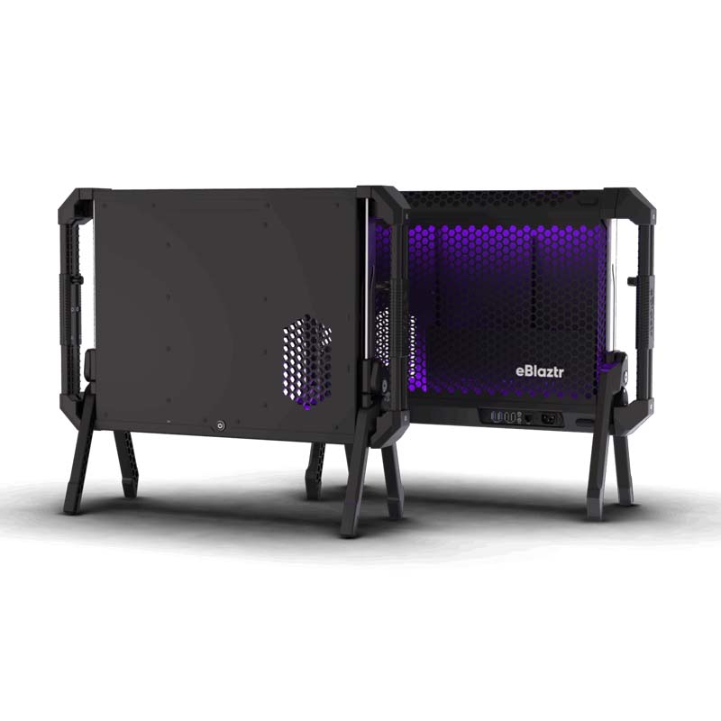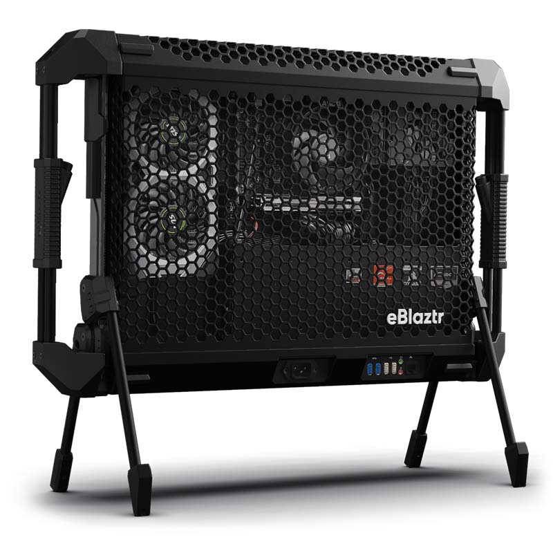 - قابلية الحمل دون تنازلات: على عكس الحواسيب المحمولة المزدحمة بالمكوّنات أو الحواسيب المكتبية الثابتة، يمنحك eBlaztr قوة حقيقية بين يديك. بفضل هيكله الخفيف وسرعة إعداده، يعيد تعريف الراحة والعملية.
