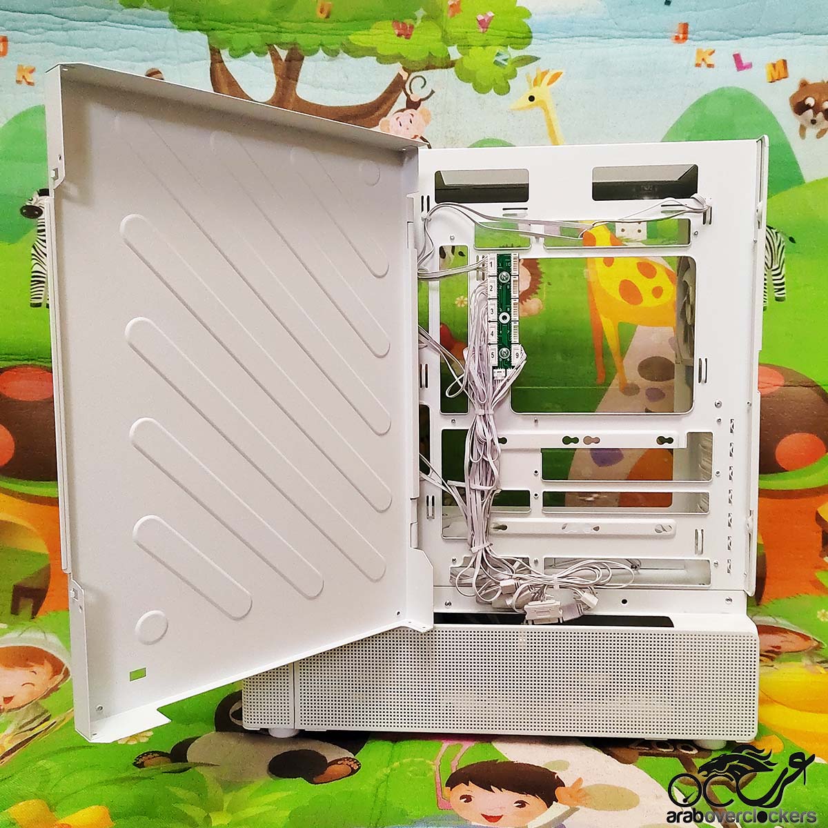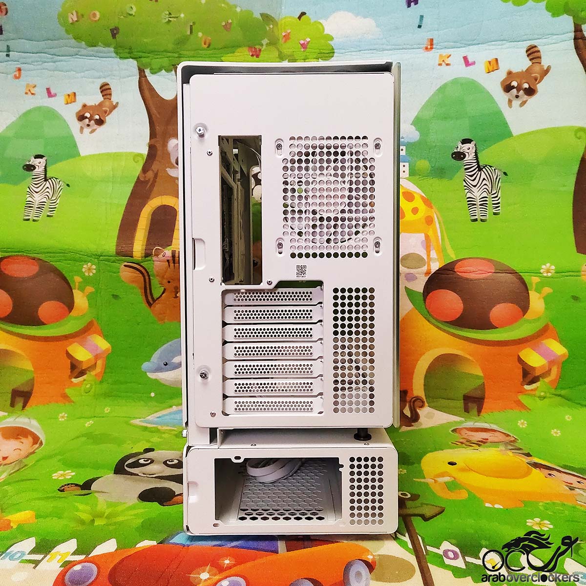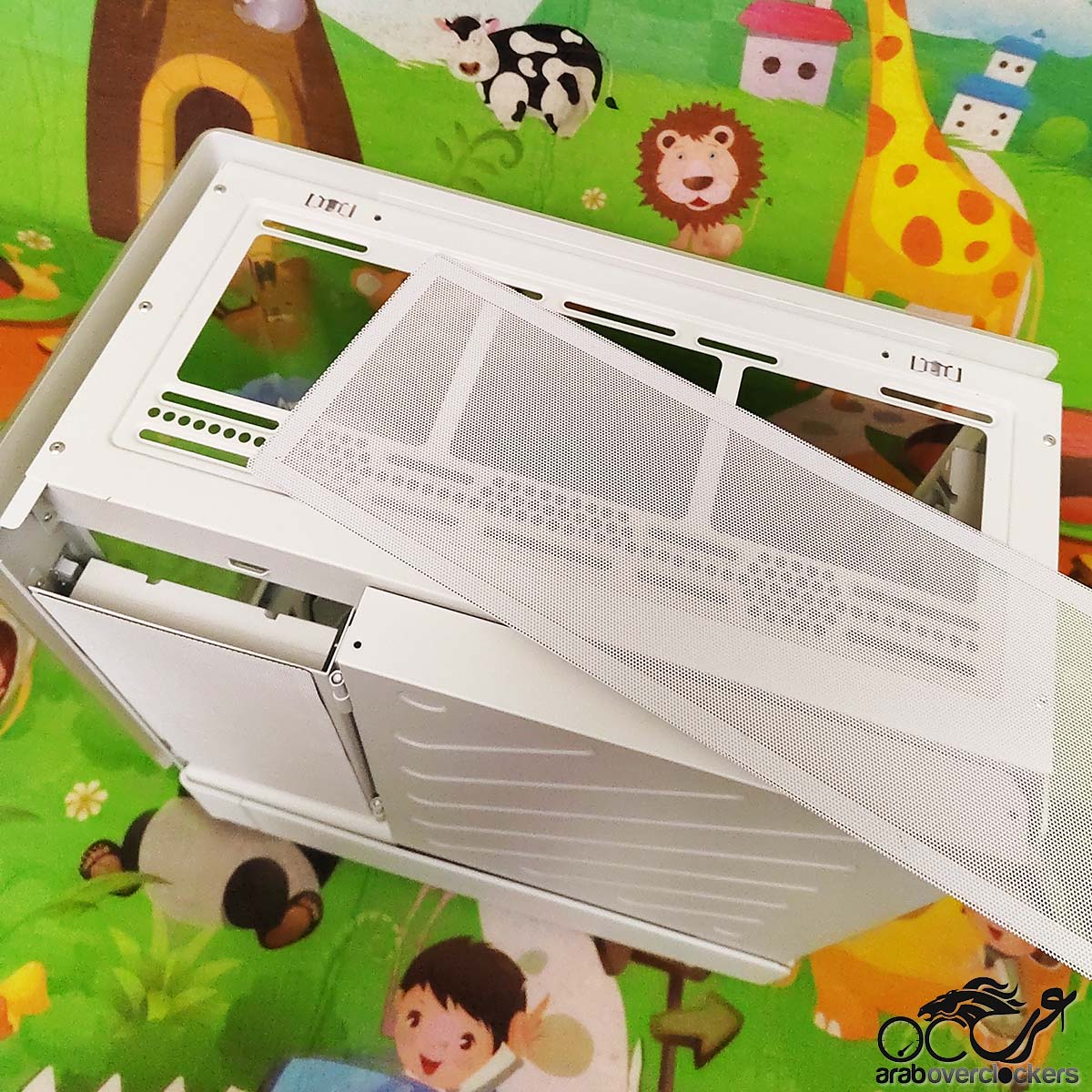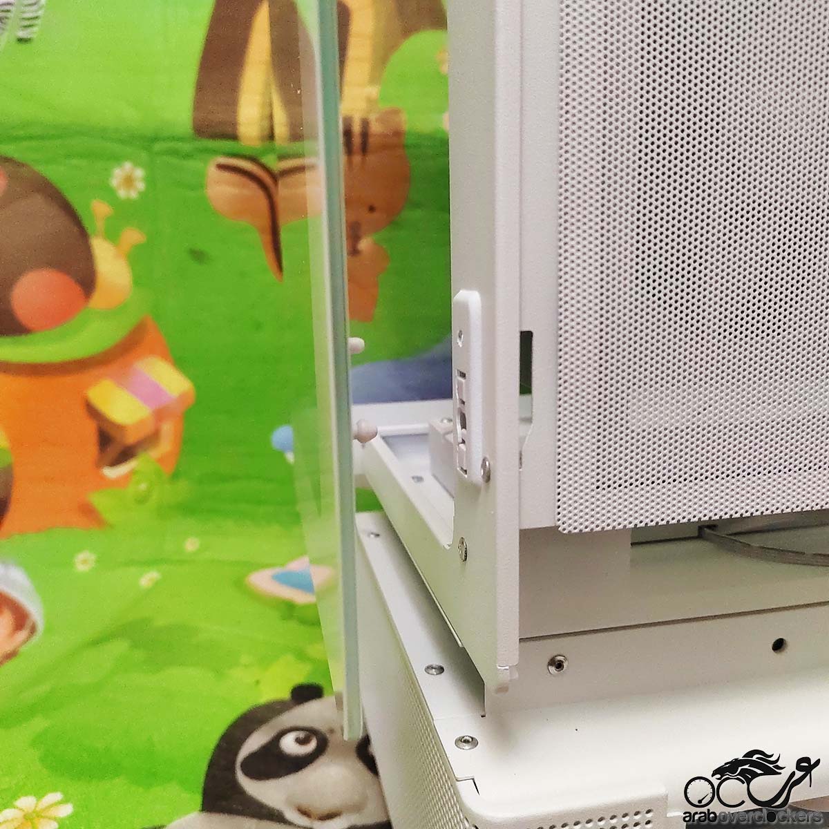 اللوحة الجانبية مصنوعة من الزجاج المقسّى كما ذكرنا كامتداد للوحة الامامية، مما يعرض المكونات الداخلية لجهازك. هذه ميزة رائعة لأولئك الذين يريدون عرض إضاءة RGB أو انظمة التبريد المخصصة أو المكونات المتطورة. مما يضيف لمسة أنيقة ومتطورة مع السماح برؤية واسعة للأجزاء الداخلية.