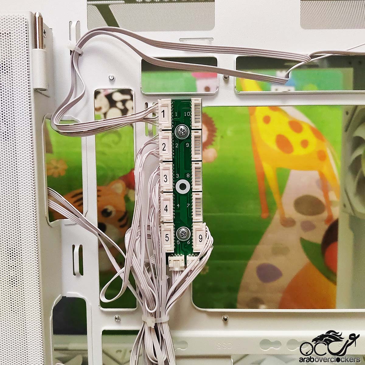 يتم توصيل جميع المراوح بمحور تحكم متكامل، يستخدم لوحة دوائر مطبوعة خضراء بسيطة. على الرغم من بساطة تصميم لوحة الدوائر المطبوعة، إلا أنها ضرورية لتشغيل المراوح، حيث تستخدم موصلات خاصة غير متوافقة مع اللوحات الأم أو وحدات التحكم الأخرى. إذا كنت ترغب في إضافة مراوح إضافية، فيجب عليك توصيلها مباشرة باللوحة الأم.