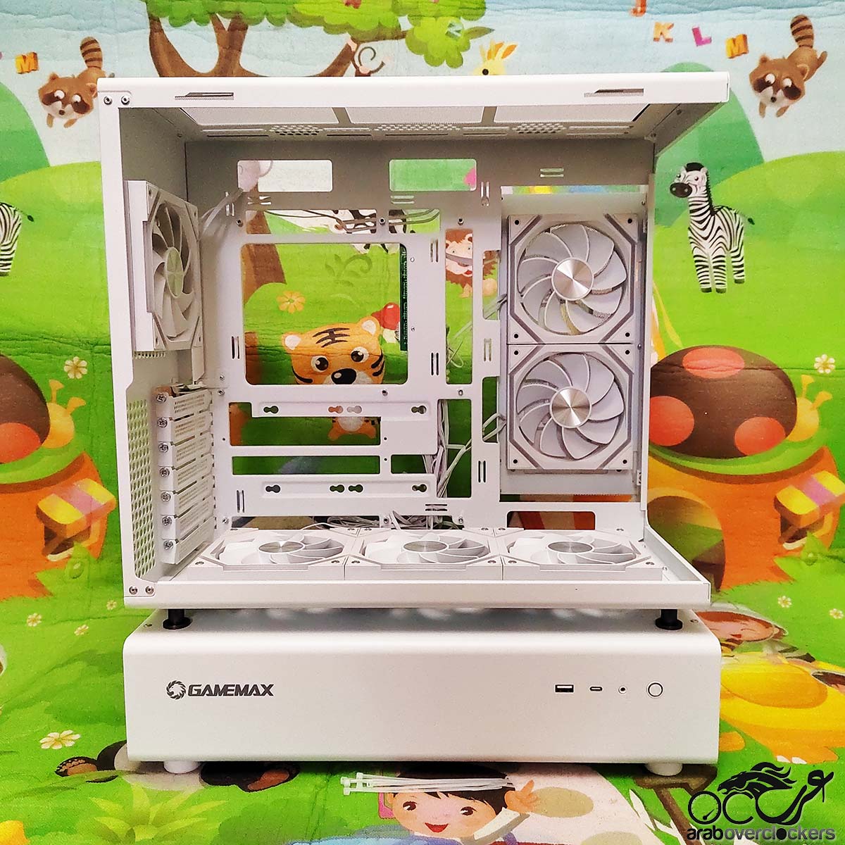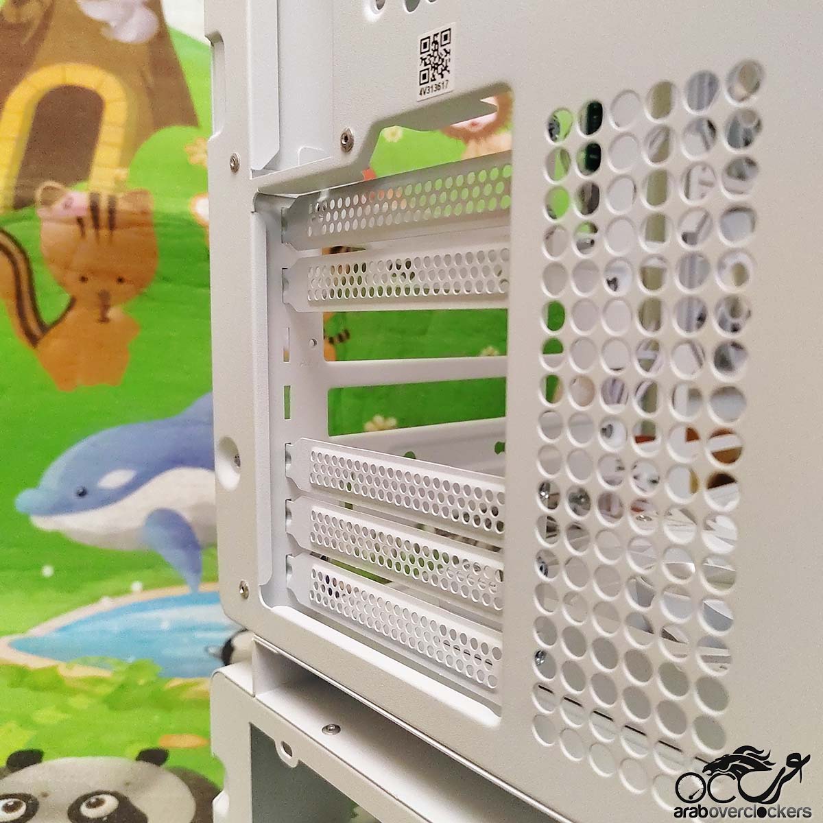 أخيرًا، فتحات التوسعة PCIe لا تحتوي على جسر، لذا يمكنك بسهولة تكييف حوامل وحدة معالجة الرسومات الرأسية من Gamemax أو جهة خارجية تناسب الأبعاد.