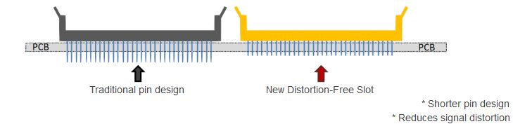 Distortion-Free Slot : تلك الميزة باختصار هة تقصير طول اللحامات الخاصة بشقوق الذاكرة فى الجهة الخلفية من اللوحة