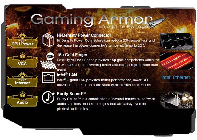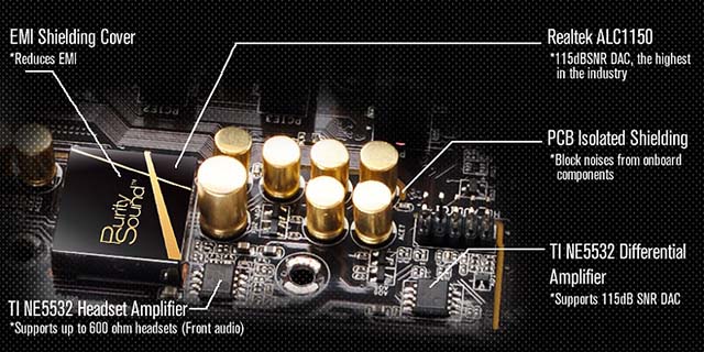 اللوحة تأتى بخواص PuritySound تلك التقنية عبارة عن مجموعة من العتاد متاكمل الخواص ي سبيل تقديم تجربة صوتية مميزة تليق بتجربة الألعاب . فأما عن شق المعالجة الصوتية فاللوحة تحوي المعالج الصوتي RealtekALC1150 و أضافت الشركة درع لحمايته من التشويش الكهرومغناطيسي لضمان وصول افضل تجربة صوتية EMI Shield بالإضافة إلى وجود مضخم صوتي من النوع TI NE5532 الذي يستطيع العمل مع السماعات ذات ال 600ohm وبالإضافة إلى محول صوتي للاشارة من رقمي الى تناظري يعمل على تنقية الاشارة ويضيف تجربة BASS جيدة وقامت ASRock بعزل المنطقة الخاصة بالمعالجة الصوتية لمنع التشويش الذي قد ينتج من المكونات الداخلية