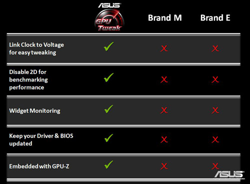 في هذه الصورة نجد Asus وهي تذكر نواحي التفوق المختلفة في برنامجها بالنسبة لبرامج الشركات الأخرى وفي الحقيقة كل ما تقوله الشركة صحيح لأن كل هذه ميزات هامة ولا توجد في برامج الشركات المنافسة