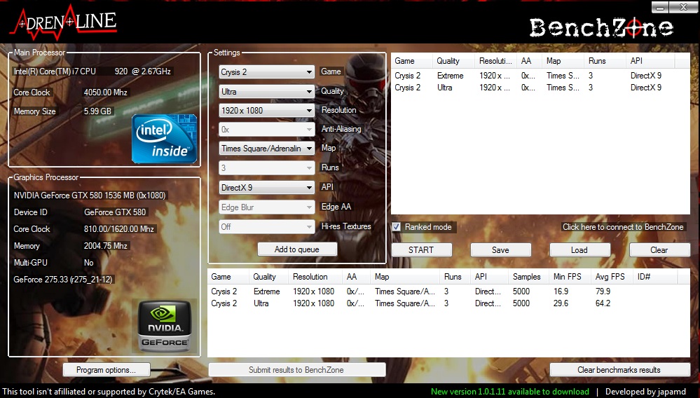 مع هذه اللعبة قمت باستخدام أداة اختبار Adrenaline