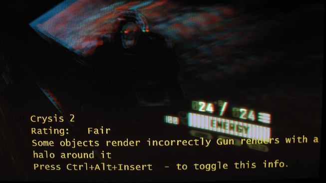 نلاحظ أن تفعيل ال 3D Vision لم يؤثر كثيراً في الأداء وهذا لأن ال 3D مدمج في اللعبة نفسها ويظهر تعريف nVIDIA دعماً متوسطاً Fair حيث تظهر بعض الرسوميات بهالات غريبة حولها