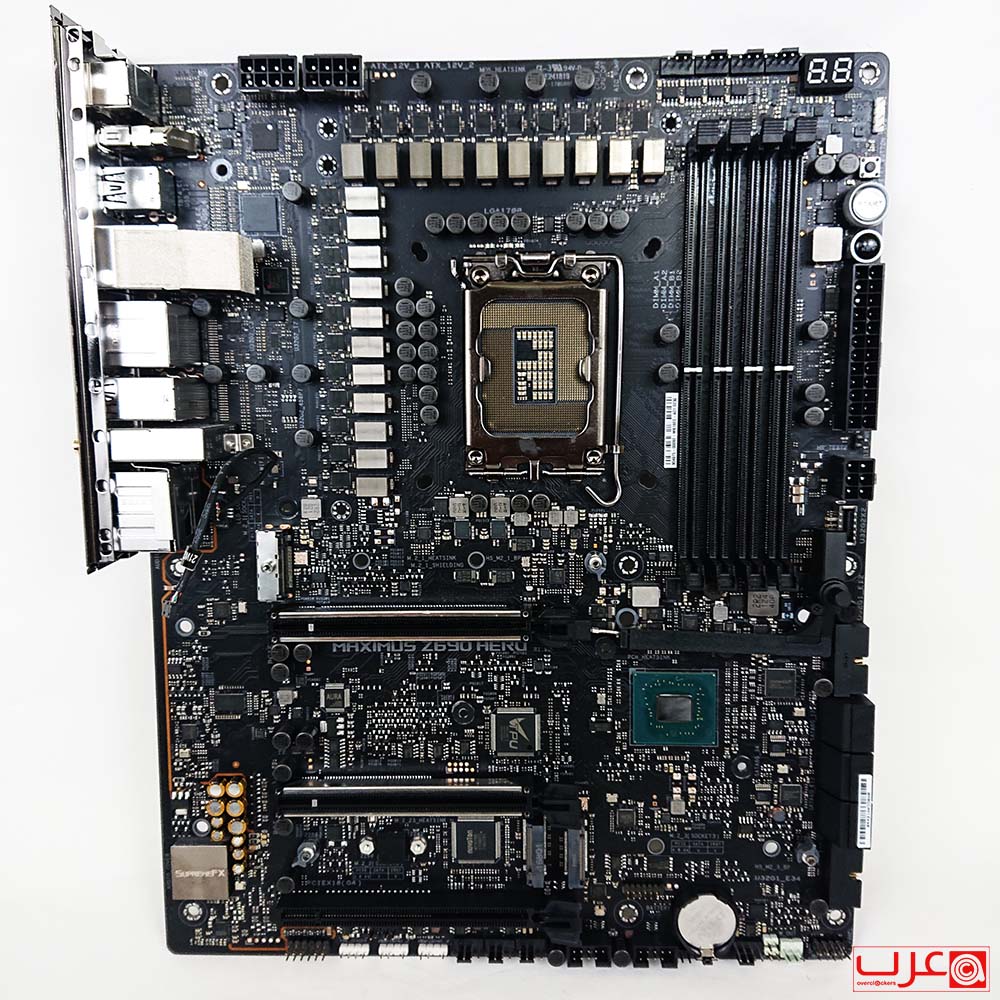 ها هي لوحة ROG Maximus Z690 Hero عارية بدون المشتتات، ويظهر لنا مدى جودة صنعها ومكوناتها.