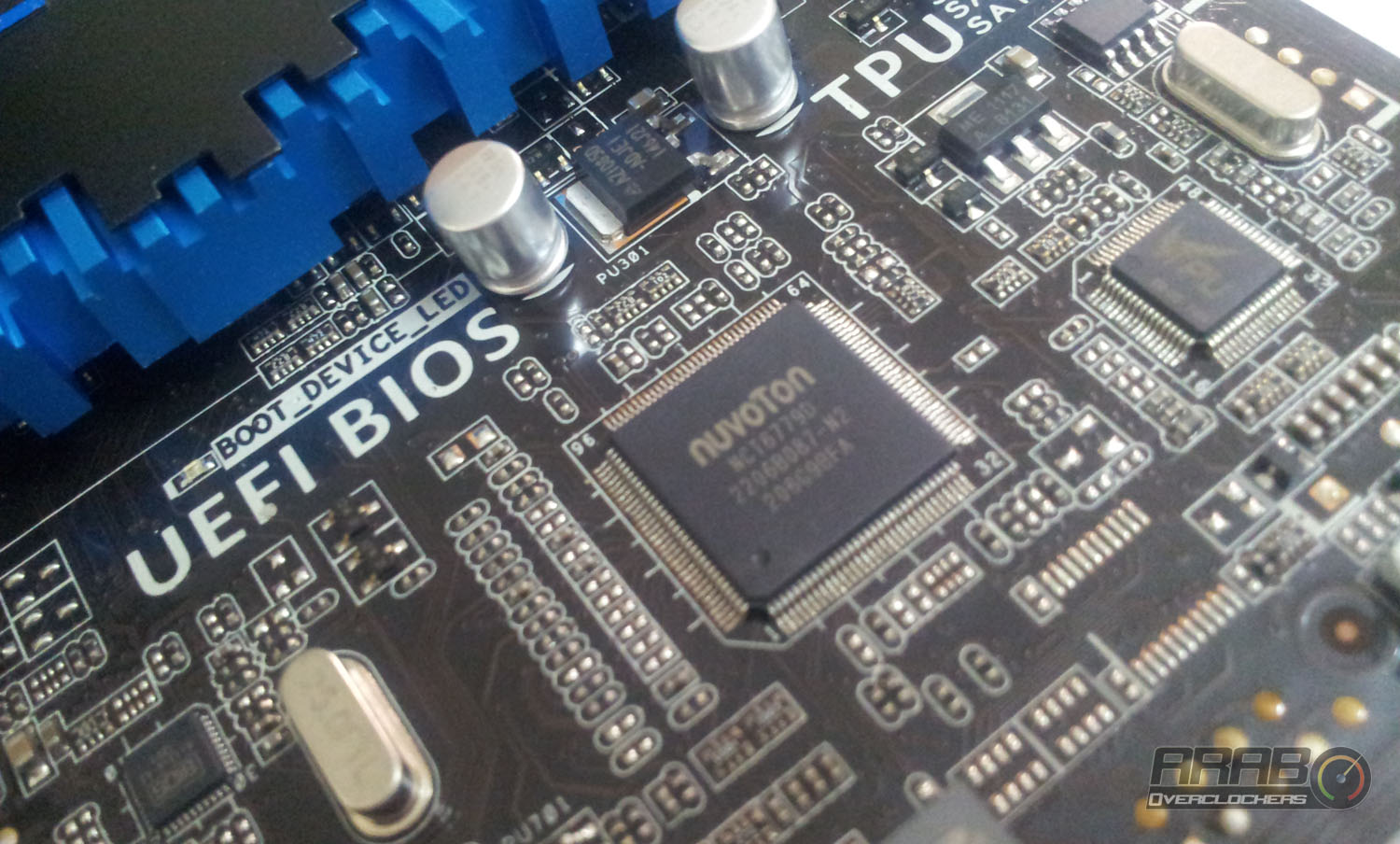 كنا سبق ان اشرنا الى تقنية Fan Xpert 2 والتي تجمع بين السوقتوير والهاردوير ، ويظهر لنا في الصورة متحكم nuvoTon NCT67790 والذي يحتوي على مستشعر لدرجات الحرارة بالاضافة الى متحكم في عمل المرواح التي تركب على اللوحة مباشرة .