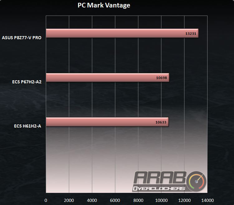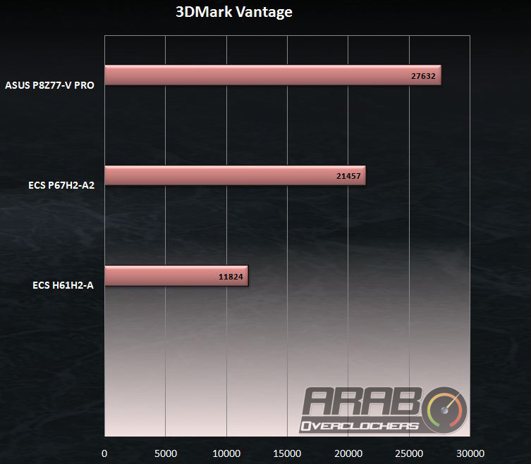 الفرق في اختبار 3DMark Vantage بضع الاف من النقاط لضالح لوحة اسوس Z77 ، ولكن لننظر على هذا الفرق على انه مجرد رقم لن يجعل الاداء يختلف بالشكل الكبير بين جيل Z77 و P67 ، اما الفرق فهو واضح جدا بالنسبة للوحة H61 لانها موجهة في الاساس الى المستخدمين الذين يبحثون عن حلول حوسبية رخيصة .