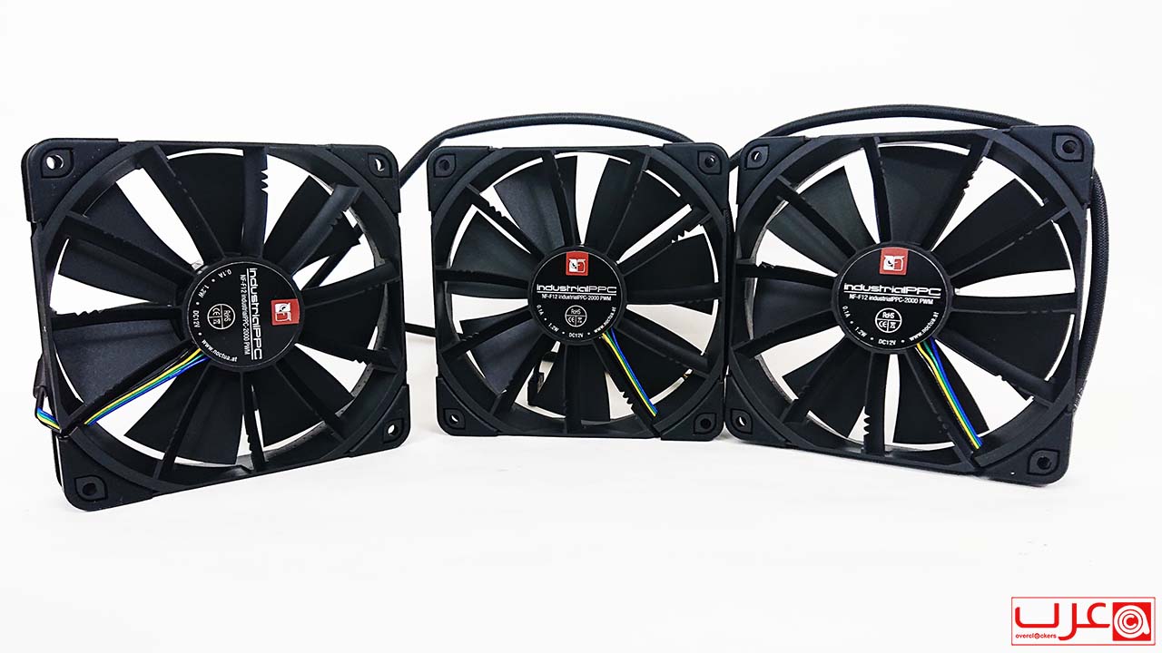 يمكننا القول أن جزء من التكلفة المرتفعة للنظام يعود إلى الجودة العالية للمراوح. فبدلاً من استخدام المرواح العامة القياسية، اختارت اسوس مراوح Noctua IndustrialPPC NF-F12.