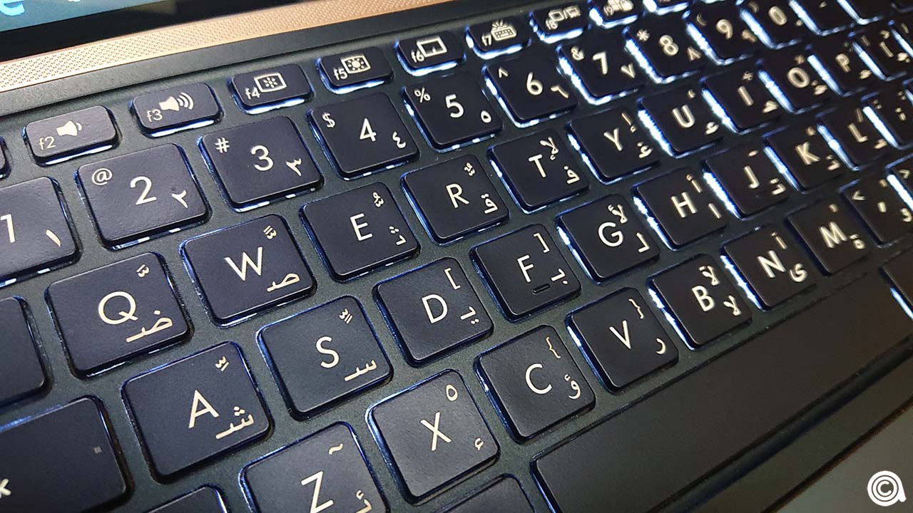 يعد التصميم قياسيًا لاجهزة Asus القابل للنقل النحيفة، مع مفاتيح كاملة الحجم ذات ضغطات حساسة، ومسافات مناسبة، وأسهم قصيرة ومجموعة من مفاتيح الوظائف الأصغر في الأعلى، بالإضافة إلى زر الطاقة المدمج في الزاوية اليمنى العلوية، والتي ننصحك بتعطيل من Windows لمنع وضع الحاسب في وضع السكون عند البحث عن زر Delete، حتى لو كان هذا أكثر صلابة من الأزرار الأخرى والضغط عليه يتطلب مزيدًا من القوة.