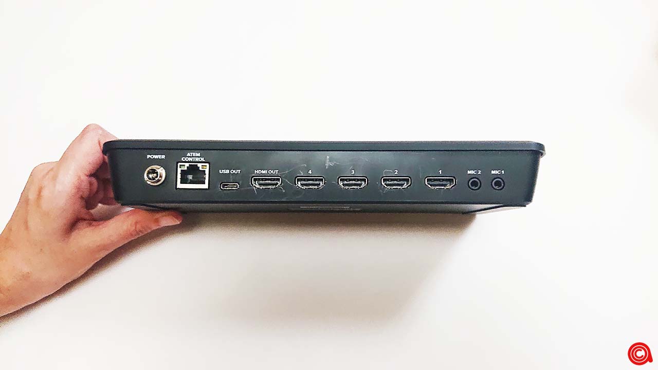 الجهاز من الخلف يحتوي على جميع المنافذ التي يحتاجها المستخدم للبدء في البث، وهي كالتالي: