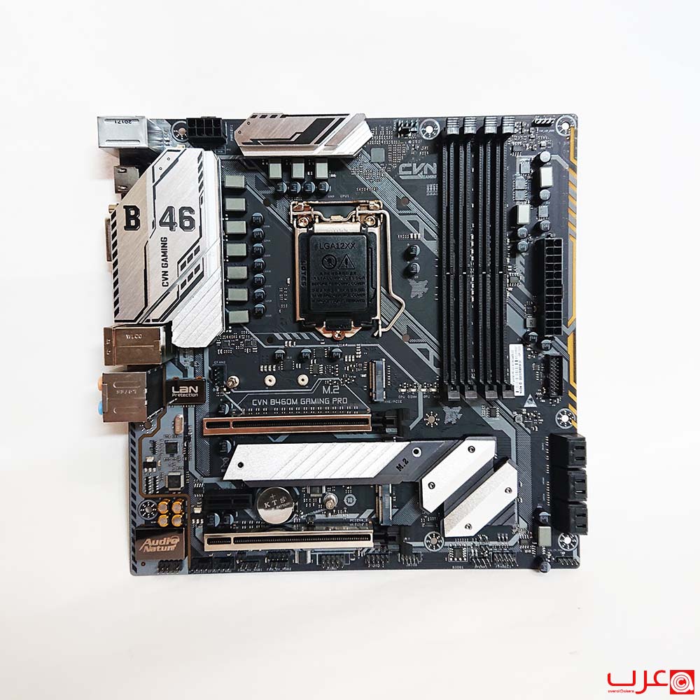 وفي الحقيقة تبدو اللوحة جيدة جدًا لسلسلة أقل. علينا أن نتذكر أن مجموعة شرائح B460 لا تسمح لنا برفع تردد التشغيل، ولكن CVN B460M مجهز بدعم طاقة قوي، والذي نراه عادةً في اللوحات الأم ذات السلسلة الأعلى.