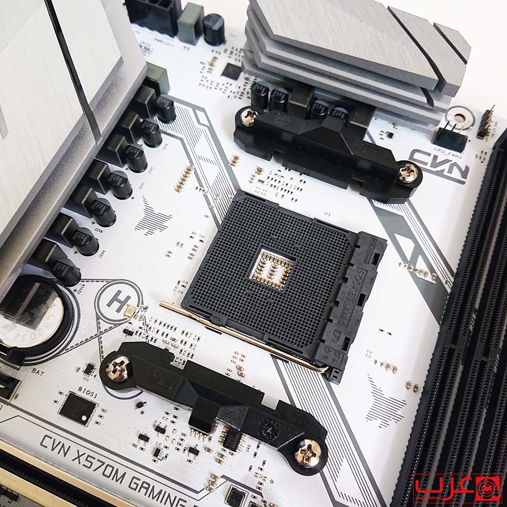 وتمتلك لوحة CVN X570M Gaming Frozen V14 تصميم 10 مراحل طاقة مع مكثفات Black Gold، ولكن لا تنتظر في المقابل امكانية رفع تردد تشغيل عالية.