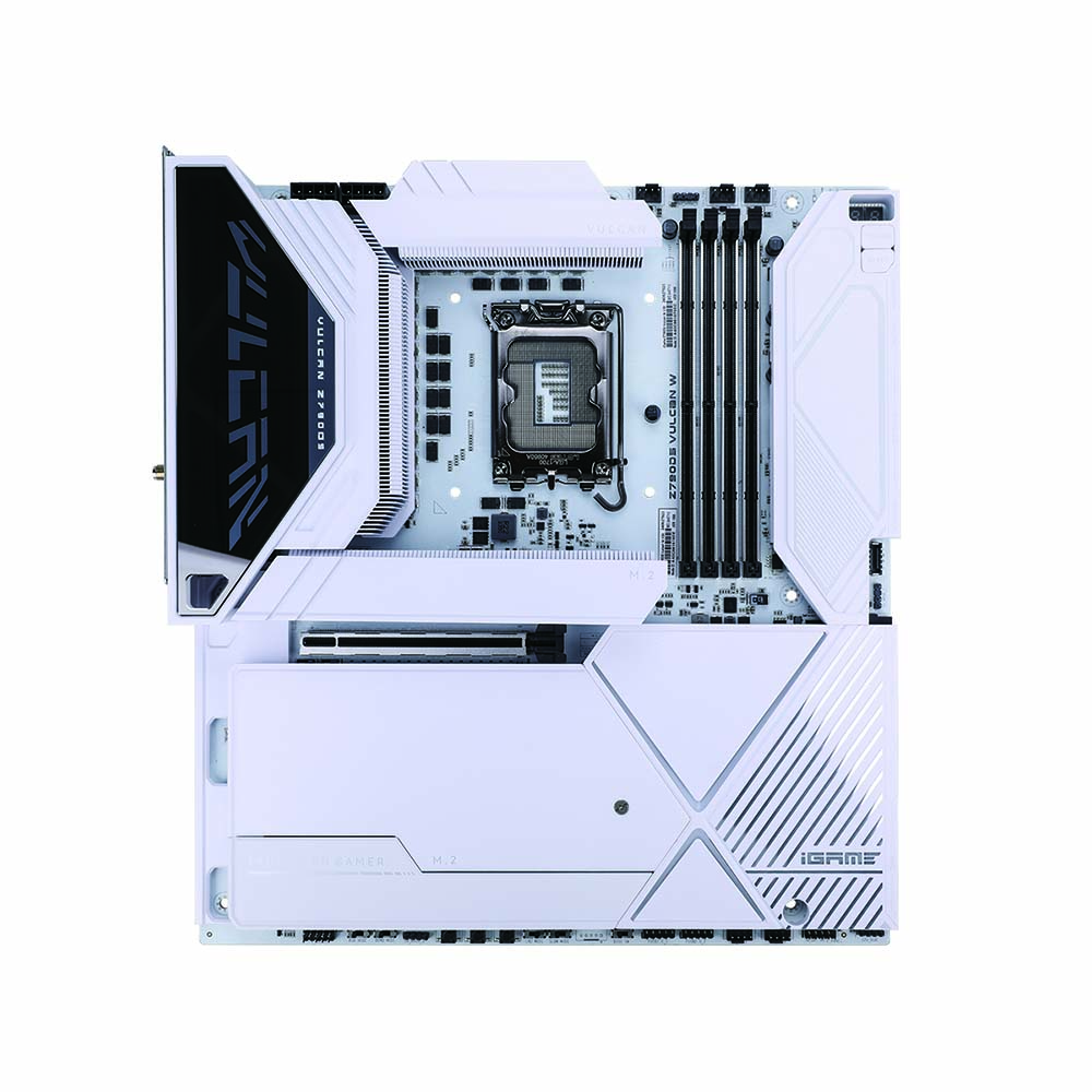 تأتي اللوحات الرئيسية iGame Z790D5 Vulcan مزودة بمبددات حرارية عالية الأداء على وحدات تنظيم الجهد الخاصة بها. وهي تتميز بمبدد حراري كبير في الجزء السفلي يغطي فتحات M.2 وPCH ويستخدم آلية سريعة الفك لسهولة تركيب SSD M.2. يمكن تخصيص علامة Vulcan التجارية المضيئة RGB على غطاء الإدخال/الإخراج الخلفي للوحة الرئيسية بالكامل باستخدام تطبيق iGame Center.