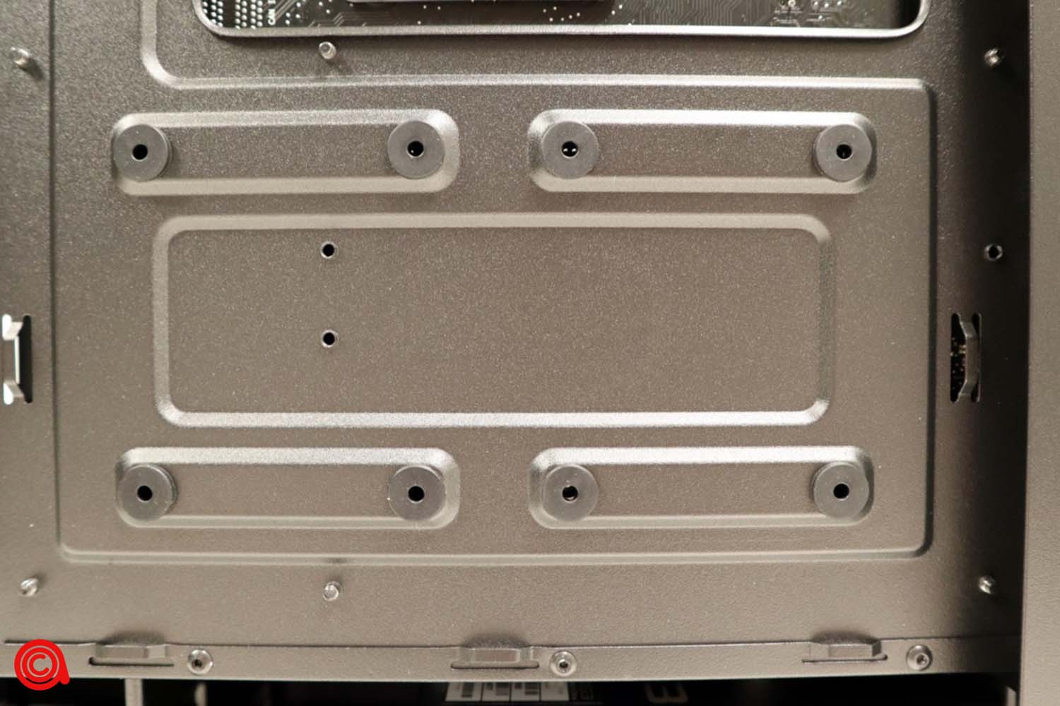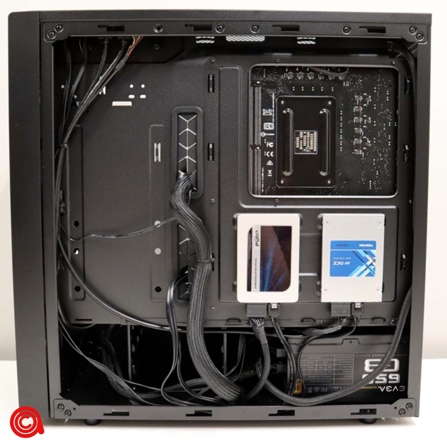 كانت إدارة الكابلات في الجزء الخلفي من الصندوق بسيطة للغاية مع العديد من الروابط واماكن تثبيتها المتضمنة. كانت المشكلة الوحيدة التي أواجهتها مع البنية بالكامل هي مقدار المساحة المتوفرة لديك لمزود الطاقة. إنها مناسبة تمامًا ويجب تثبيت جميع الكبلات مسبقًا قبل تأمين المزود في مكانه. لذلك، إذا كنت ترغب في إضافة كبل إضافي فسيتعين عليك إزالة الوحدة بأكملها للقيام بذلك. كنت سأكون لطيفًا إذا كان قفص الأقراص الصلبة قابلًا للإزالة أو حتى إذا تم نقله إلى اليسار قليلا. مثل العديد من صناديق Cooler Master الأخرى، فإن صندوق NR600 يحتوي على حوامل مقاس 2.5 بوصة التي اشرنا اليه سابقا. أنا شخصياً من المعجبين بهذا العدد الكبير من اماكن التثبيت بدون أدوات وأتمنى حقًا أن تستمر Cooler Master في تضمينها في جميع صناديقهم.