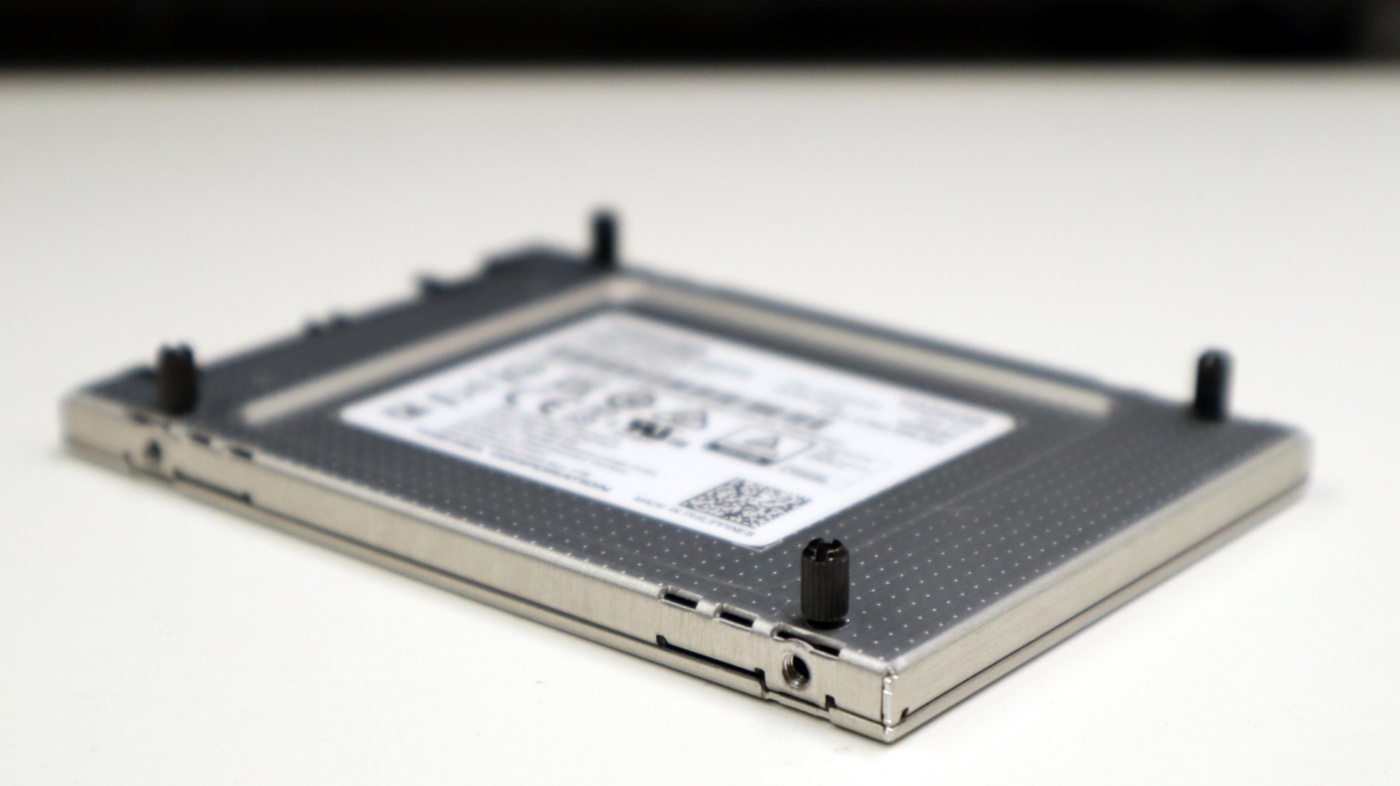 يتم تثبيت “القواعد” بدون اي ادوات في محرك الأقراص، ثم يتم تركيب محرك الأقراص ببساطة باستخدام الحلقات المطاطية ويدفع إلى مكانه.