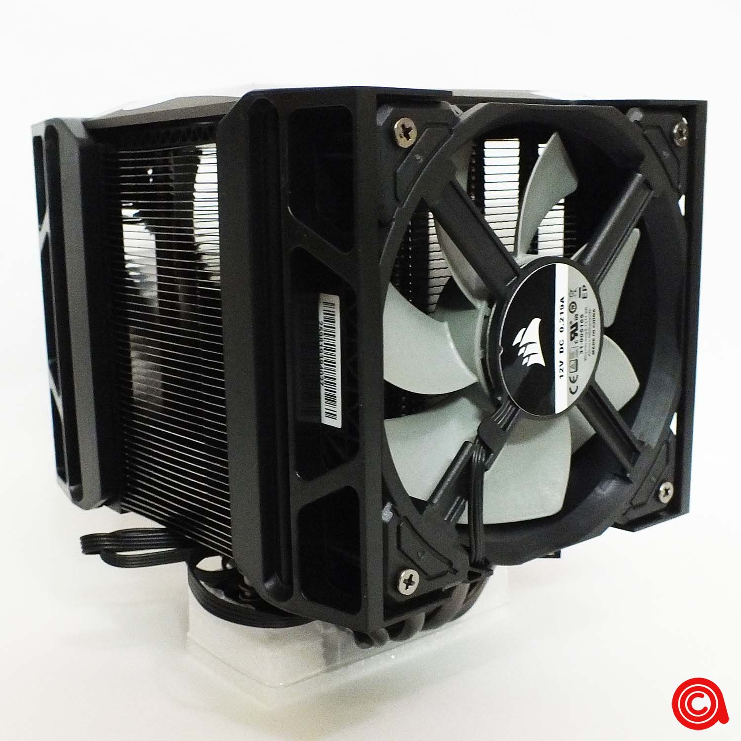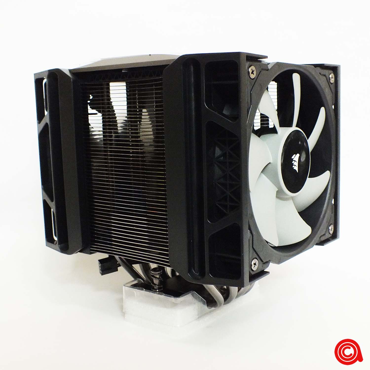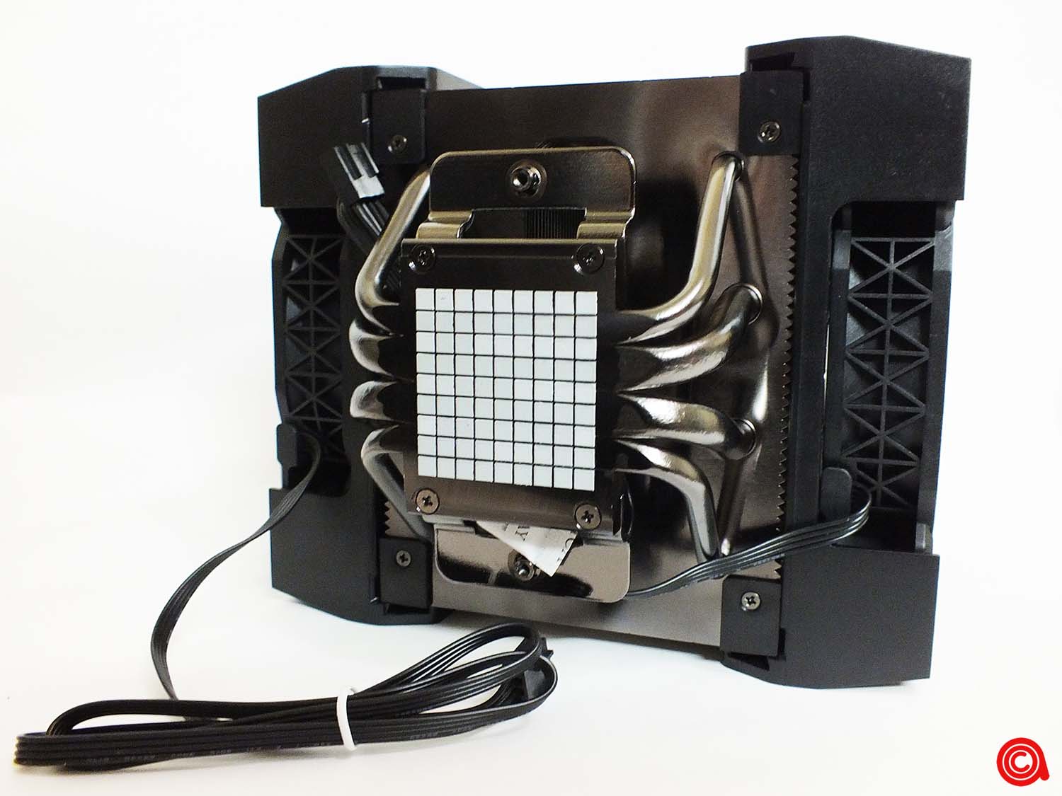 ويأتي المشتت بمعجون يتم تطبيقه بشكل مثالي على القاعدة بشكل عبارة عن لوح شطرنج، وهو عبارة عم معجون CORSAIR XTM50 الحراري. وتأتي قاعدة صفيحة التبريد مصنوعة من 4 مواسير حرارية بتلامس مباشر للسطح، إثنين بقطر 6 مم واثنين بقطر 8 ملم.