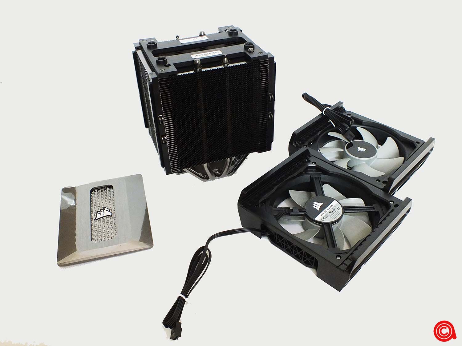 عند التفكيك بالكامل، فأنه من الواضح أن نرى لماذا مشتت A500 كبير جدًا، فهناك طن من البلاستيك. وهذا يرجع إلى حد كبير إلى ان CORSAIR استخدمت نظام لضبط ارتفاع مرواح ML120 ، ولكن حتى مع هذا فهناك الكثير من القطع هنا.