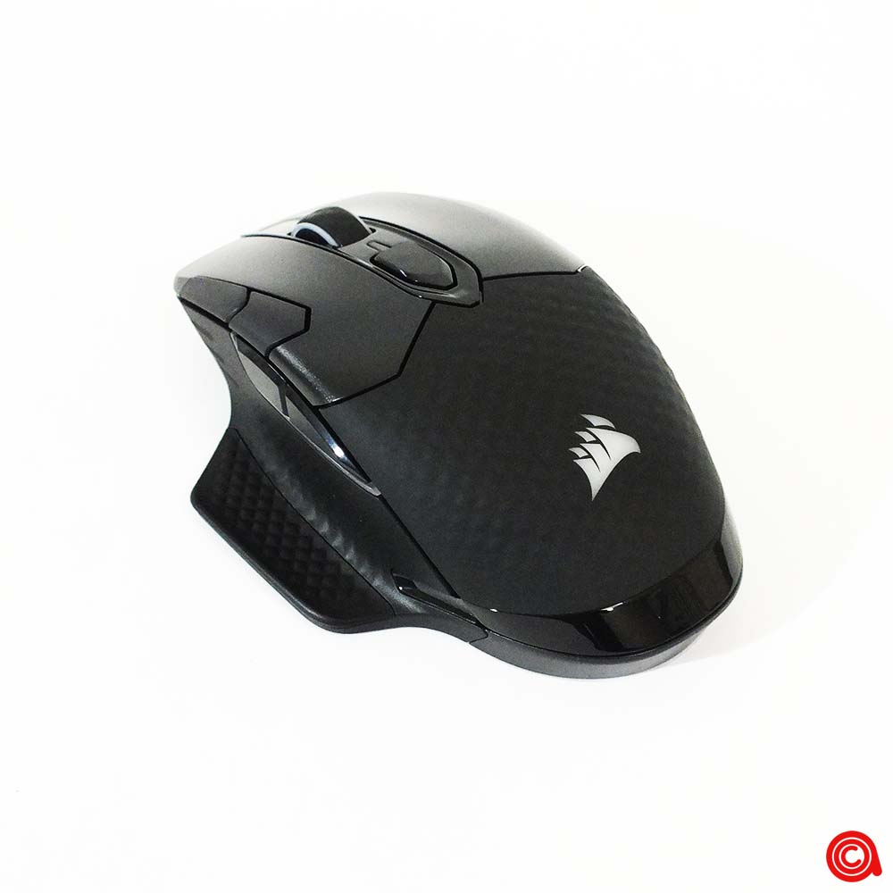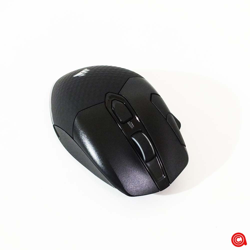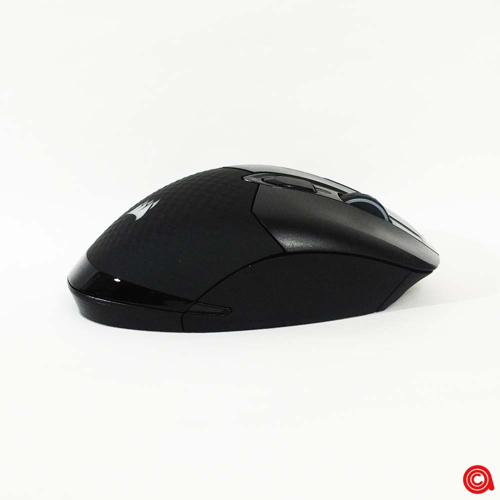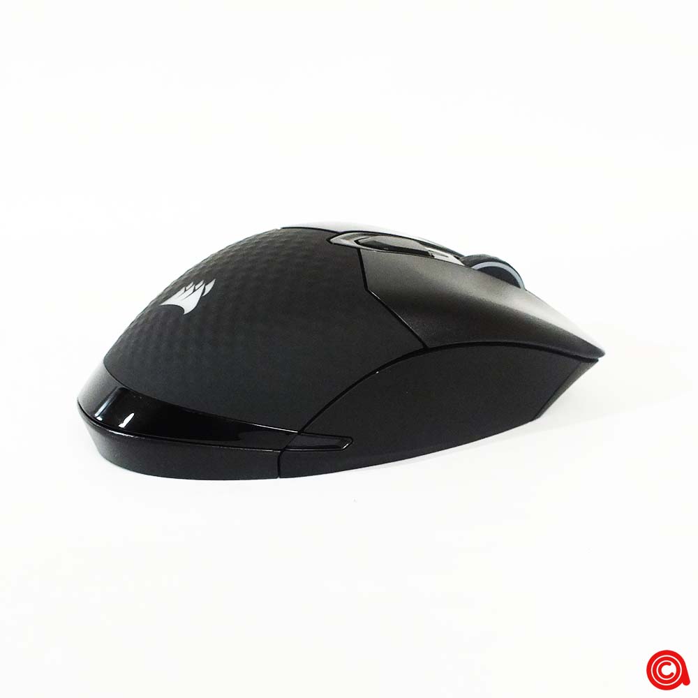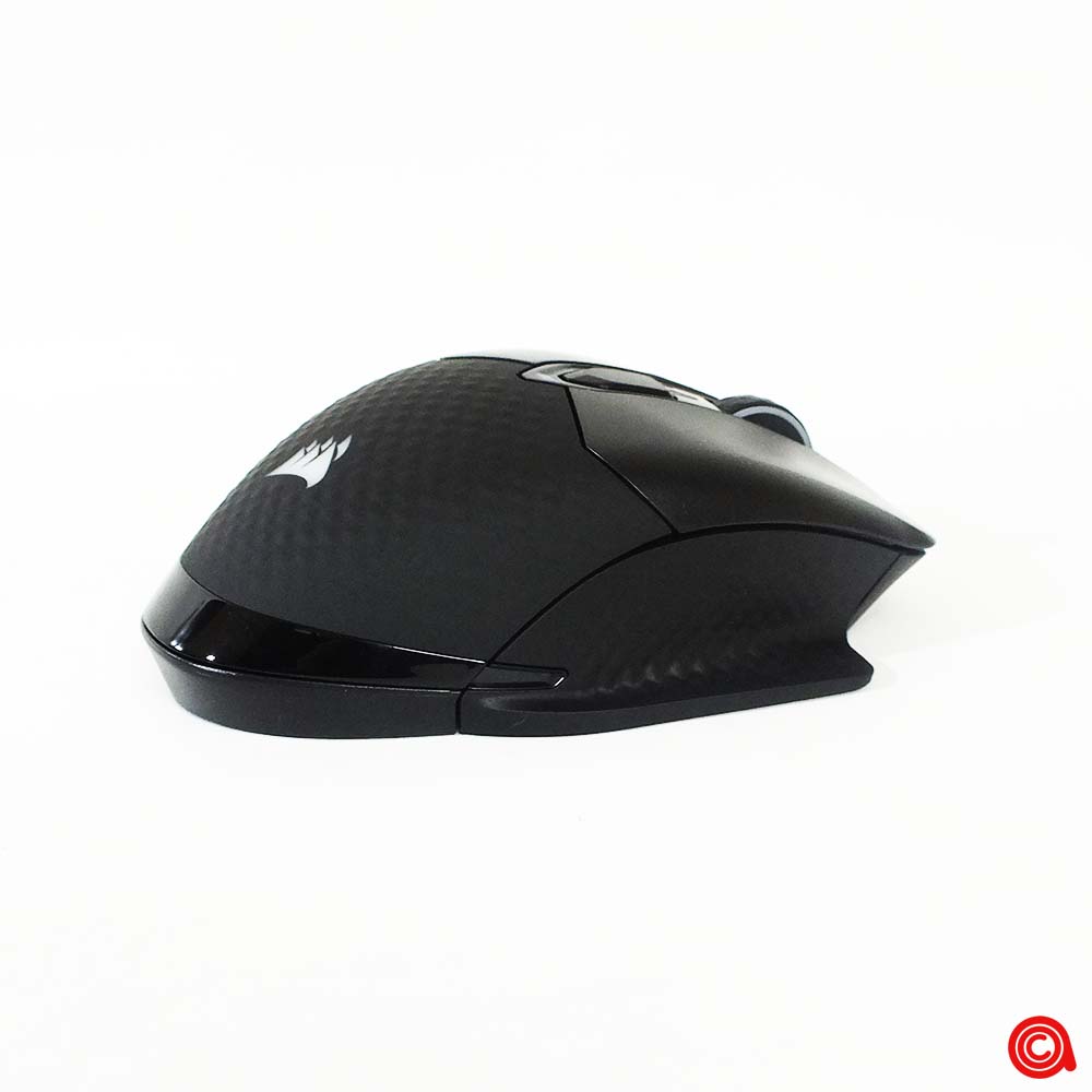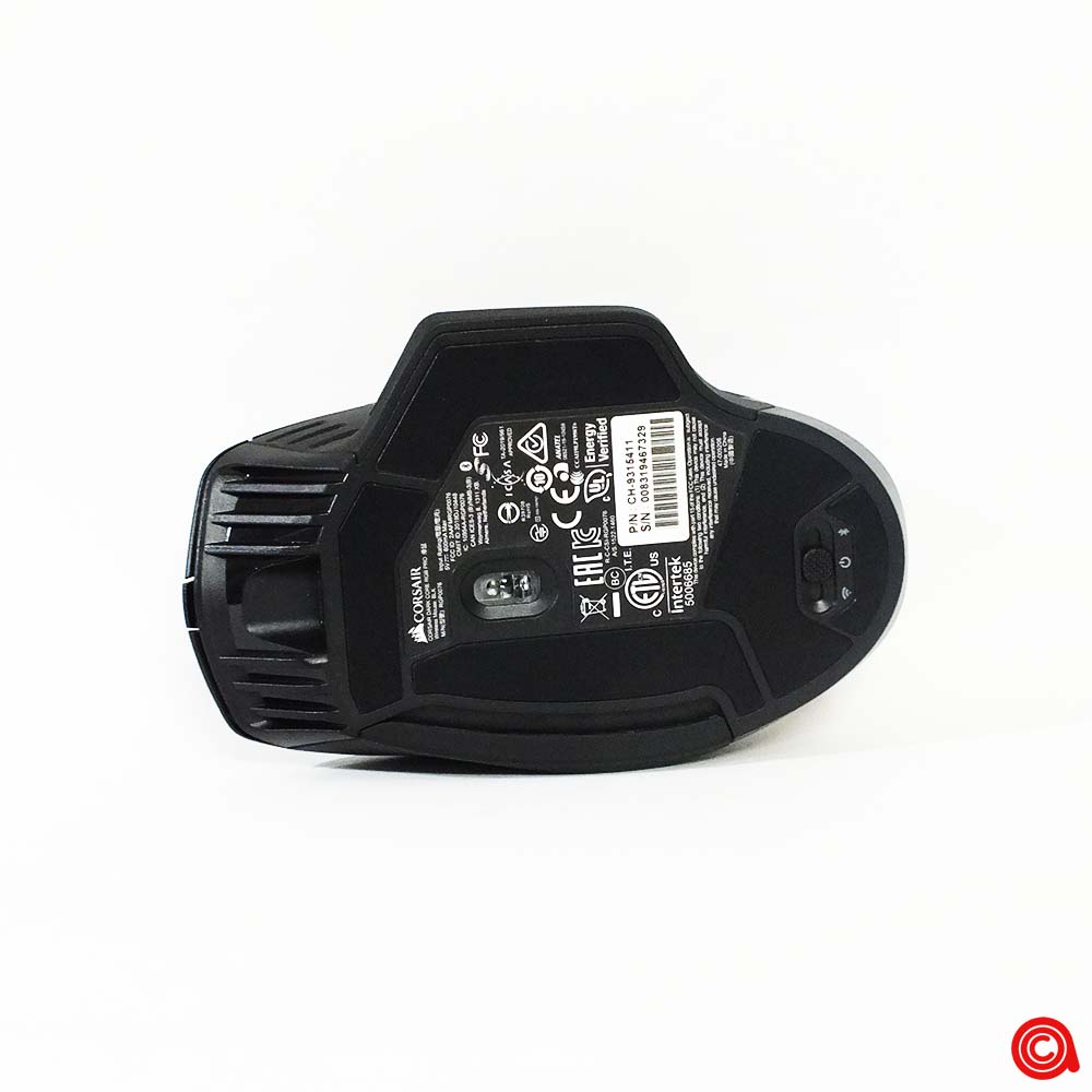 ويتواجد منفذ التوصيل USB من النوع C مخفيًا تحت عجلة التمرير، في الجزء الأمامي من الفأرة. ويمكن استخدام هذا لتوصيل الفأرة لوضع البيانات والشحن، وتحويله إلى جهاز سلكي بدون أي مخاوف تتعلق بالبطارية، أو لشحن الجهاز بعد جلسات اللعب. لقد وجدنا أنه يمكن استخدام العديد من الكابلات المختلفة من النوع C مع هذه الفأرة، وذلك بفضل ان Corsair قررت عدم تصميم هذه المنطقة لقبول موصلها الخاص فقط.