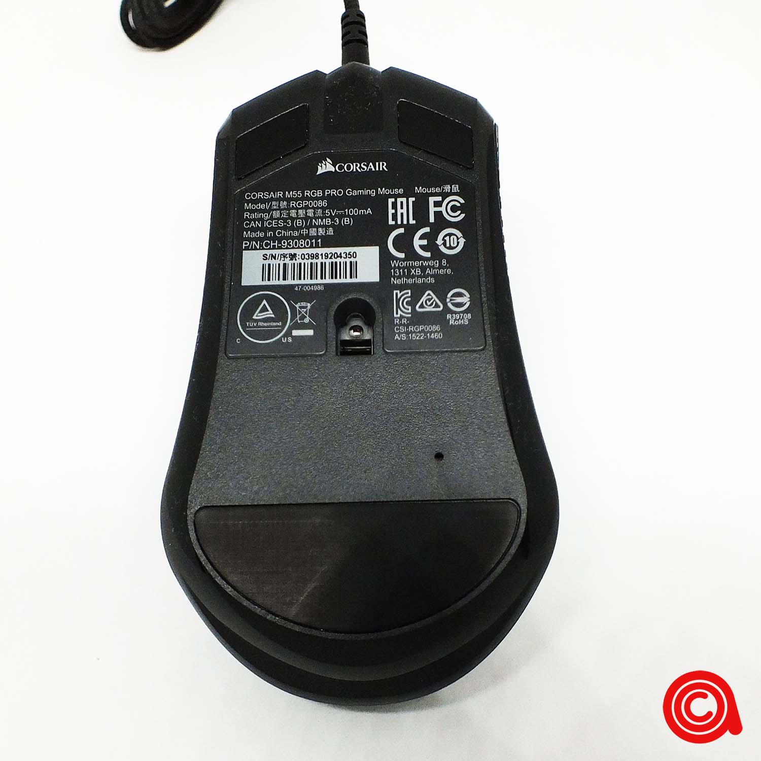 نظرًا لأن M55 RGB Pro يتم تسويقه كماوس يعمل باي يد، فإن الجانب الأيمن هو صورة معكوسة من الجانب الأيسر، بما في ذلك أزرار الأمام والخلف.
