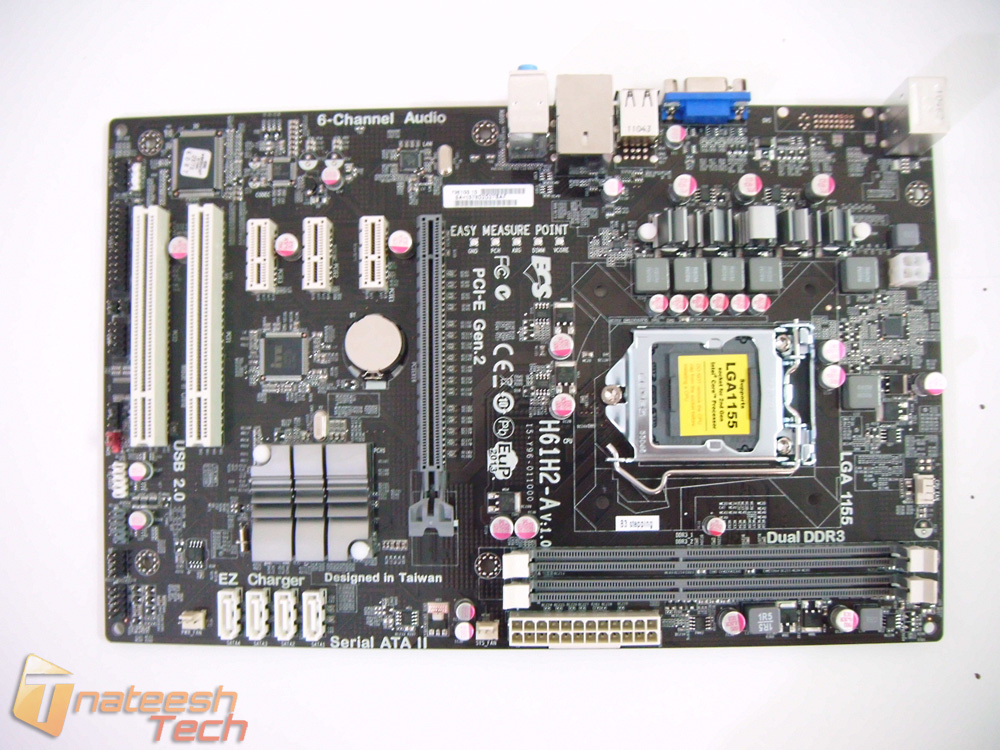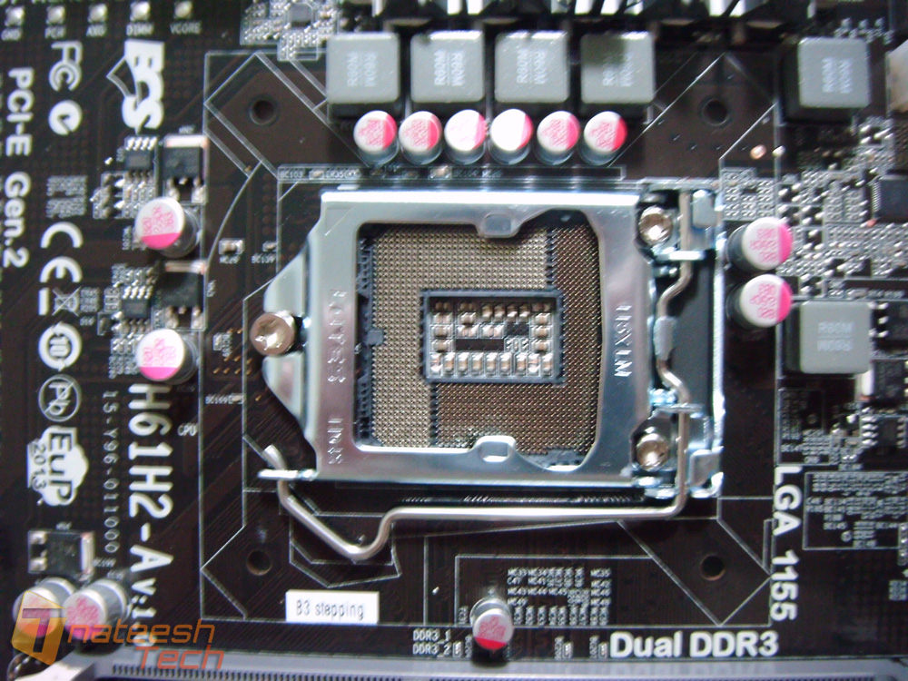 على الرغم من رخص سعر اللوحة وتصنيفها في الفئة الابتدائية في لوحات الجيل الجديد فأننا نشاهد بجوار مقبس المعالج المكثفات الصلبة Solid Cap و SFC (كما يظهر في الصور) ، اهتمام ECS بهذه الجزئية يأتي من تنافس جميع المصنعين لللوحات على التنافس بوضع افضل المكونات للوحات Sandy Bridge للحصول على افضل اداء واستقرار حين كسر السرعة (وهو الامر الذي يميز هذه العائلة الجديدة) .