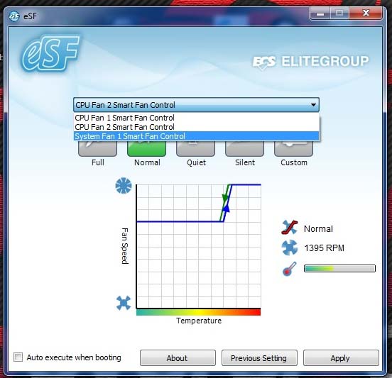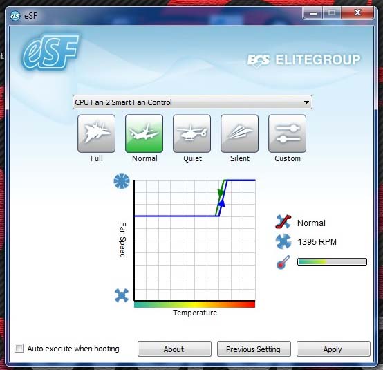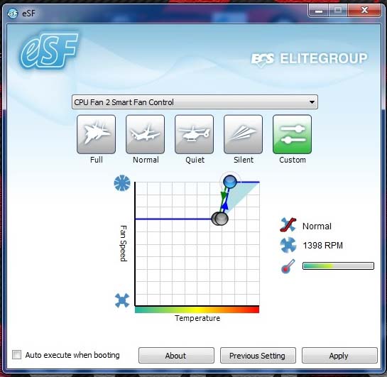اما برنامج eSF فهو مختص بالتعامل مع مراوح النظام من خلال عمليات ضبط مسبقة موضحة في شكل صور أو من خلال التعامل المباشر يدوياً مع كل مروحة علي حدي بمستويات يتم تحديدها يدوياً.