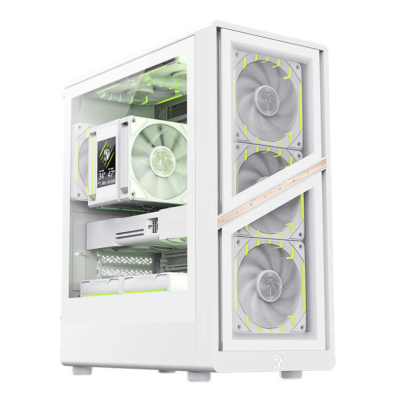 يتوفر GAMEMAX AERIS 330 باصدارين مميزين: AERIS 330 Mesh وAERIS 330 Glass، وكل منهما متوفر باللونين الأسود والأبيض ليناسب مختلف التصاميم. تم تجهيز AERIS 330 MW/MB بلوحة أمامية شبكية، مما يوفر تدفق هواء وتهوية مُحسّنين لتحسين الأداء الحراري. في المقابل، يتميز صندوق AERIS 330 GW/GB بلوحة أمامية من الزجاج المقسّى، مما يمنحه مظهرًا أنيقًا وفاخرًا مع الحفاظ على قدرات تبريد قوية. يأتي كلا الطرازين مزودين مسبقًا بأربع مراوح GAMEMAX Tornado T12 ARGB، مما يضمن تبريدًا فعالًا وإضاءة RGB نابضة بالحياة فور إخراجهما من العلبة.
