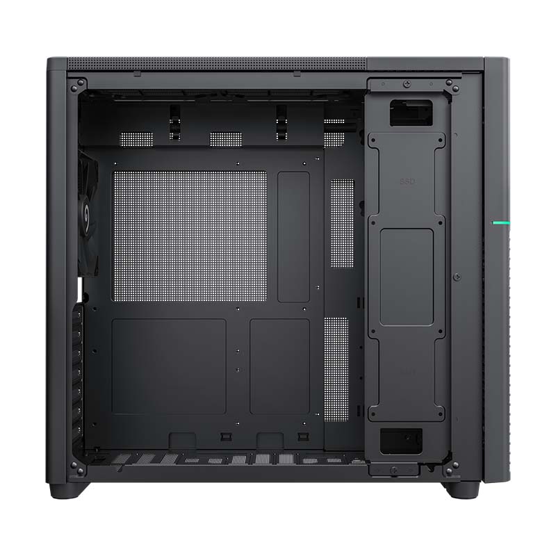 - توافق عالٍ: يدعم التبريد السائل مقاس 240 مم ووحدات معالجة الرسومات بطول 355 مم واللوحات الأم ATX وخيارات التخزين المرنة (حتى 4 أقراص SSD).