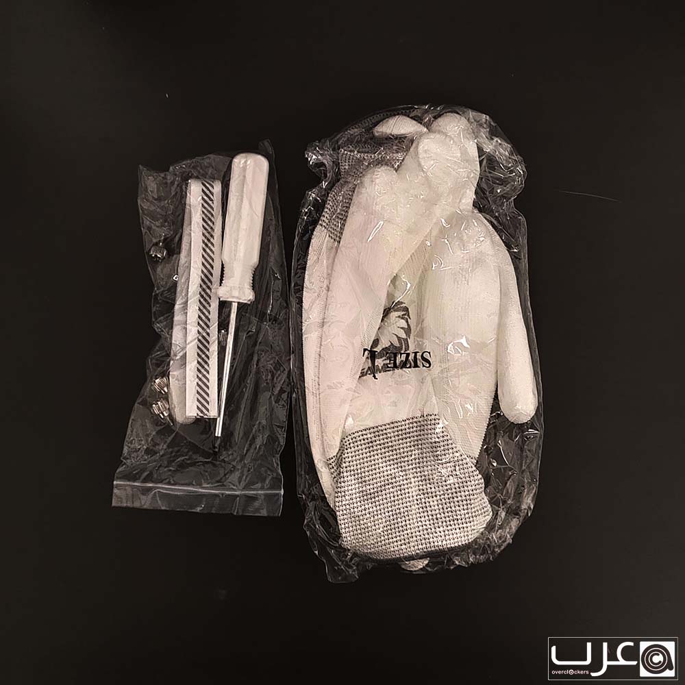 تشتمل محتويات العبوة على مزود طاقة، دليل استعمال مفصل، مجموعة من أربعة براغي للتثبيت الآمن داخل الكيسة مع مفك، وقفاز واقٍ لضمان عملية تركيب سلسة ونظيفة.