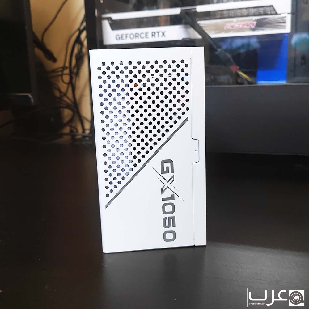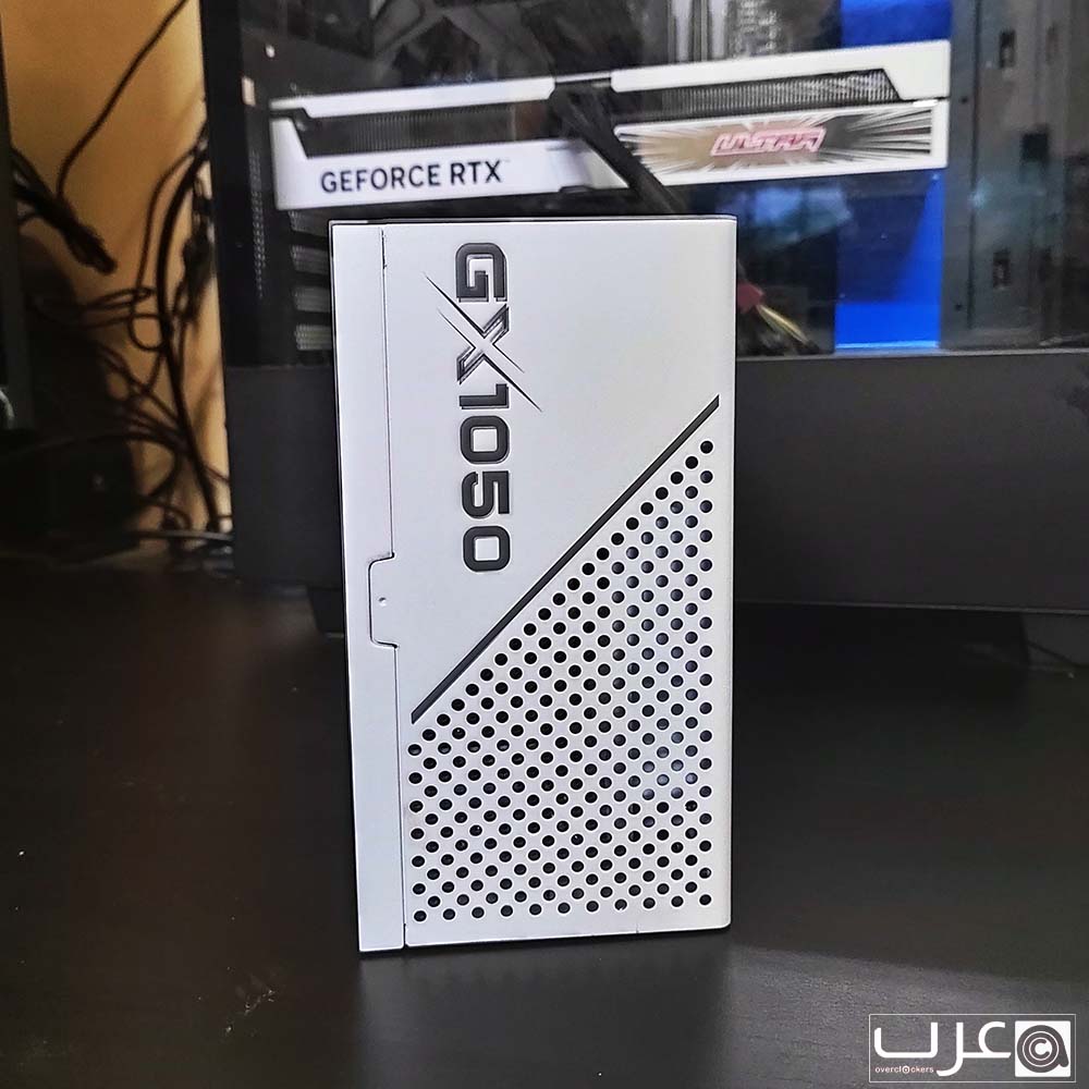 وتحتوي جوانب وحدة PSU على شعارات كبيرة لسلسلة GX1050.
