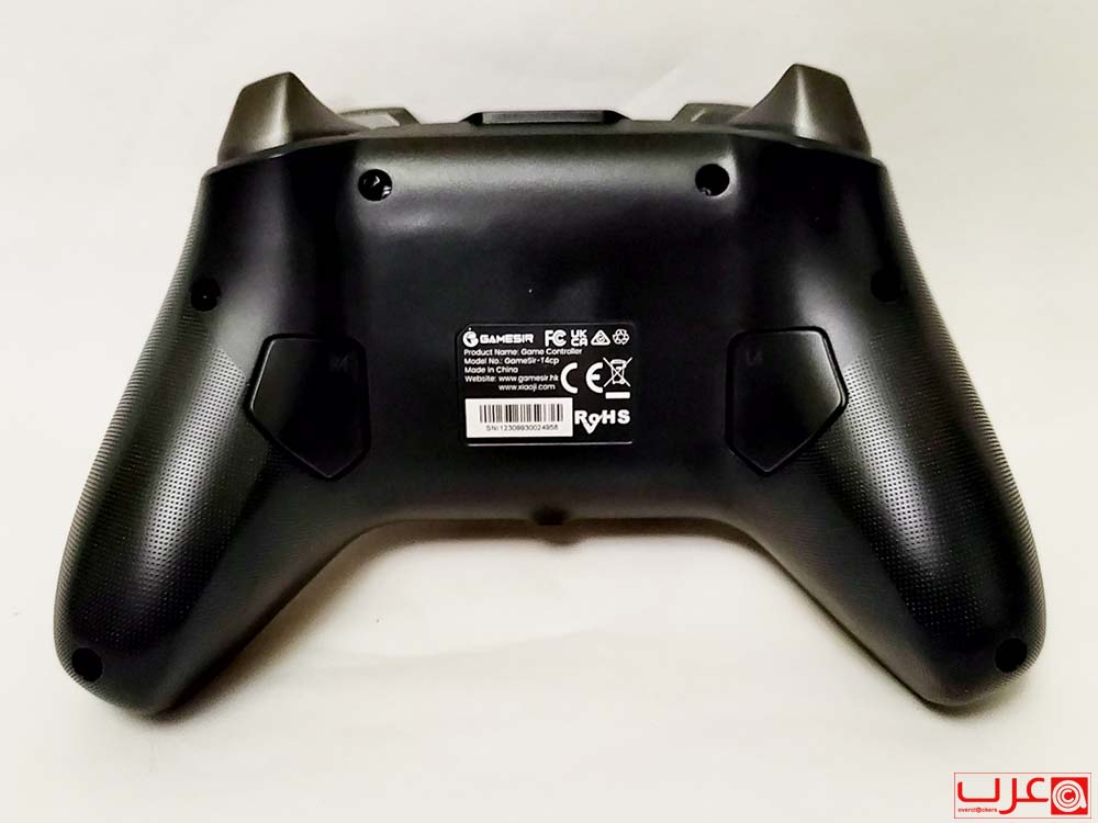 في الجزء الخلفي، ستجد بعض المعلومات الإضافية حول GameSir T4 Cyclone Pro. بالاضافة الى صورة امامية وخلقية للمتحكم.