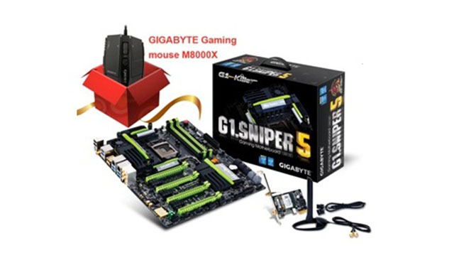 في اطار الأنشطة التسويقية التي تقوم بها شركة جيجابايت، فقد قدمت الشركة عرضاً تسويقياً على لوحتها الرئيسية G1.Sniper 5 لزيادة نسبة مبيعاتها، فقد قدمت معها كهدية ماوس الألعاب M8000X الذي يعد سلاحاً قوياً تم تصميمه خصيصاً لمُحترفي الألعاب. الماوس يأتي بمُحرك Pro-Laser تصل سرعته إلى 6000 DPI، مما يُمكن الماوس من العمل بسرعة عالية ودقة كبيرة. ذاكرة Ghost Engine المُدمجة تستطيع تحديد 45 وظيفة للزر الواحد مع تعديل الماكرو.