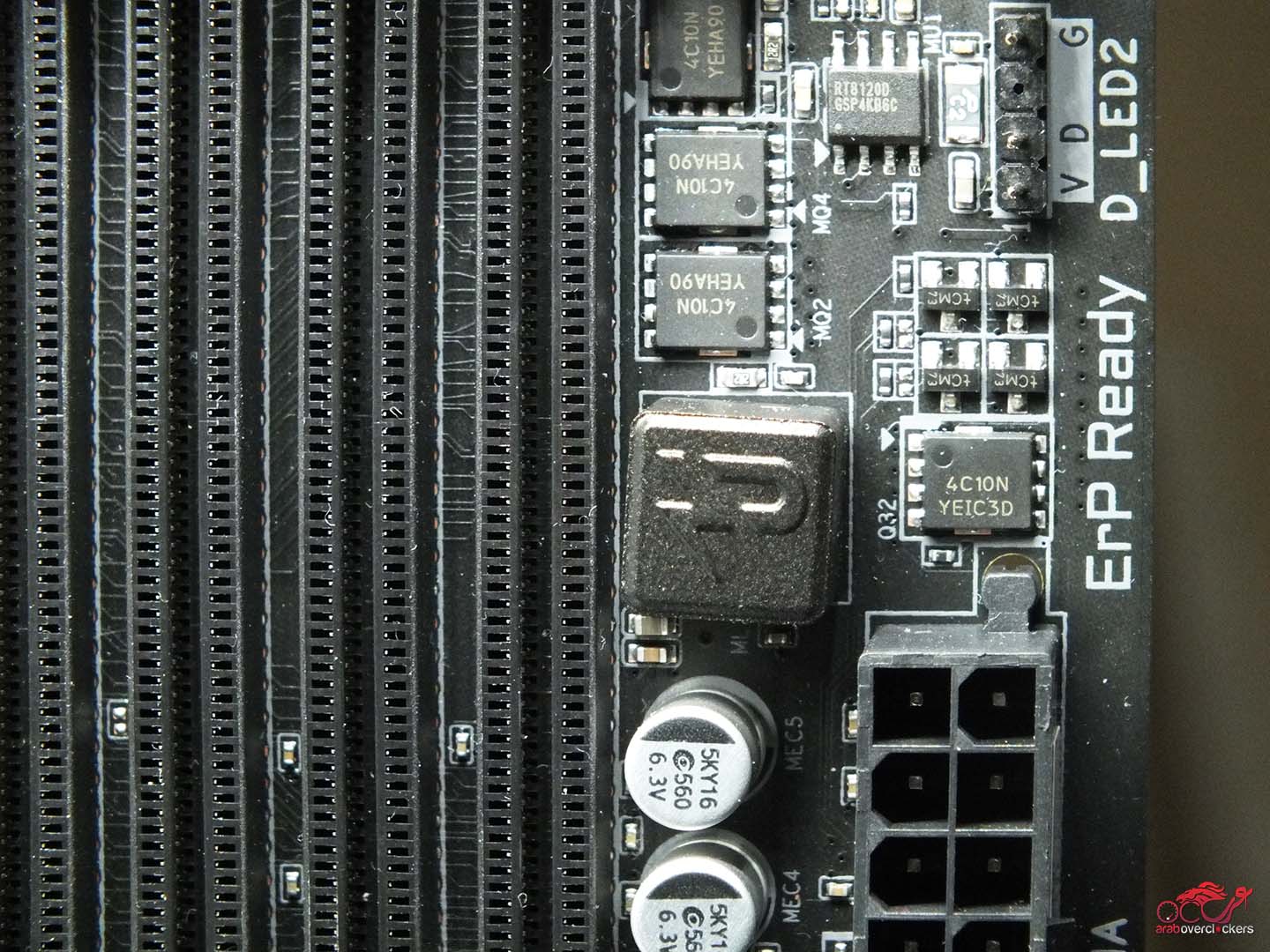 اما عن كتجكم الذاكرة فهو عبارة عبارة عن VRM مرحلة واحدة يتم التحكم فيها بواسطة وحدة تحكم PWM أحادية المرحلة من نوع Richtek RT8120D مع برنامج تشغيل مدمج، وهناك نوعان من الدوائر MOSFET ذات الجانب المنخفض و MOSFET عالي الجانب.