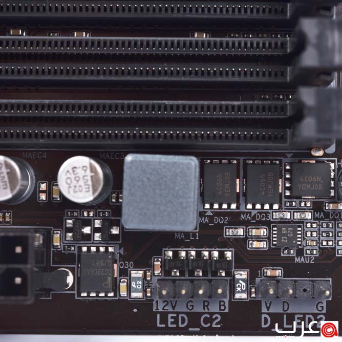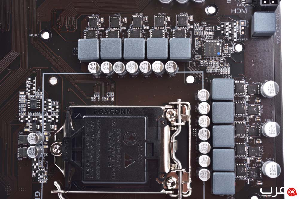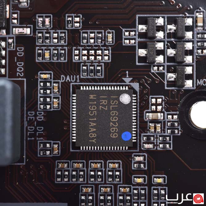 كما تستخدم اللوحة متحكم ISL 69269 لل VRM، مع مرحلة واحدة يتم التحكم فيها بواسطة وحدة تحكم PWM أحادية المرحلة وبرنامج تشغيل مدمج، مع MOSFET ذات الجانب المنخفض.