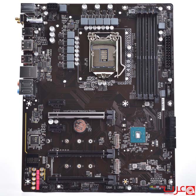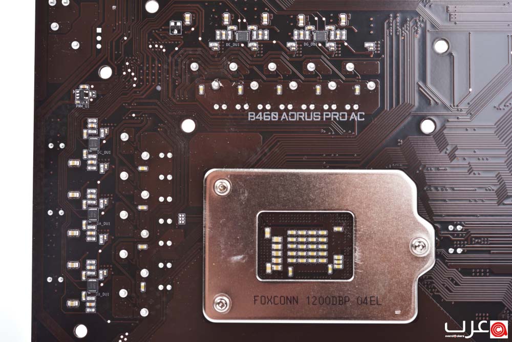 ها هي لوحة B460 Aorus Pro AC عارية بدون المشتتات، ويظهر لنا جودة صنعها.