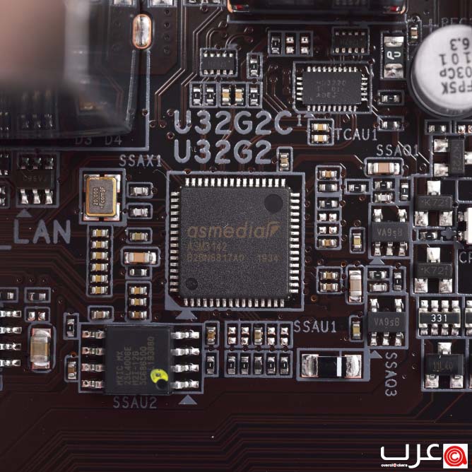 نجد على اللوحة ايضا شريحة ومتحكم انتل الرئيسي، كذلك يتم استخدام متحكم ITE IT8688E لتوسيع عمليات التحكم في المراوح ومنافذ الادخال والاخراج I/O. كما كما وجدنا ايضا مبدلات ASMEDIA ASM1480 التي تتحكم في عرض النطاق الترددي لل PCIE.