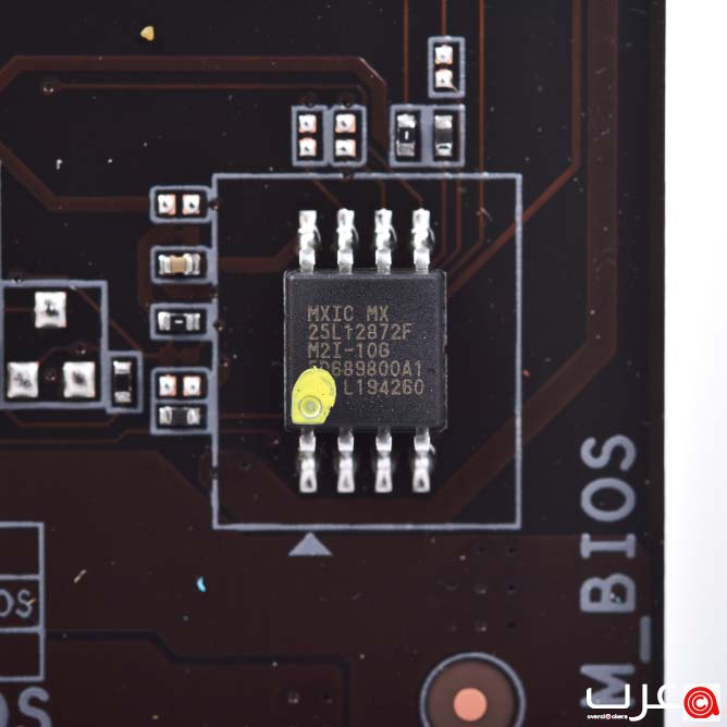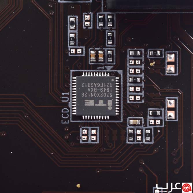 وهناك شريحة تحكم ITE 5702XQN128، وتوفر اللوحة شريحة BIOS مزدوجة بحجم ROM 128 ميجابايت.