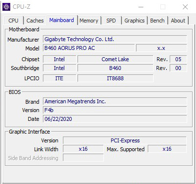 وبيانات معالج انتل واللوحة محل الاختبار كالتالي: